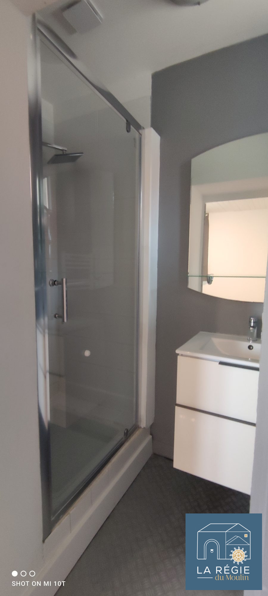 Entrée avec placard, cuisine séparée (semi équipée), grand salon, wc séparés.