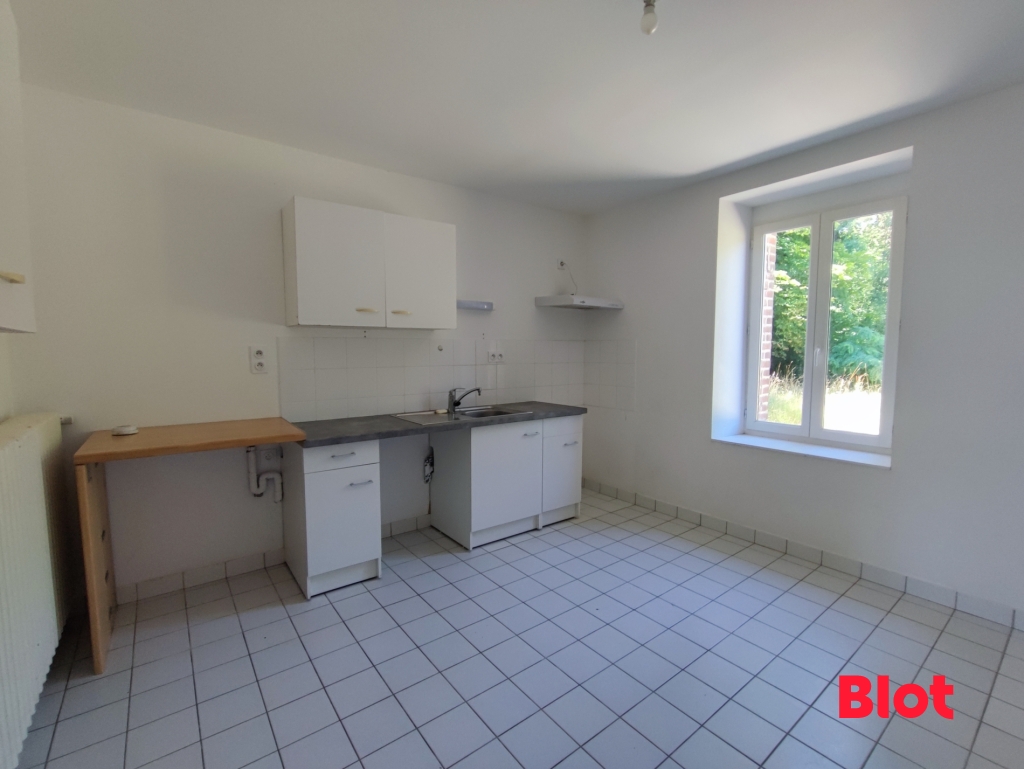 Maison de bourg - centre ville - cuisine aménagée/équipée (four, hotte, plaque de cuisson), salle d'eau avec wc. 1er étage : palier avec placard, 1 chambre. 2ème étage : bureau. Libre 23 décembre (possibilité avant)