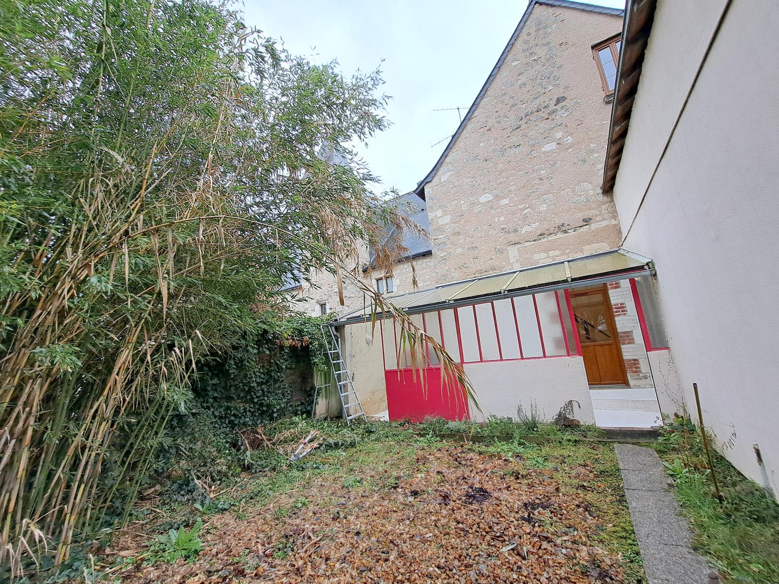 Maison avec petit jardin et garage - Maison de ville située rue Saint François à La Riche comprenant une entrée par la véranda, une cuisine séparée, un salon/séjour, un wc. Au 1er étage : un dégagement, 2 chambres dont une avec un dressing, une salle de bains,...
