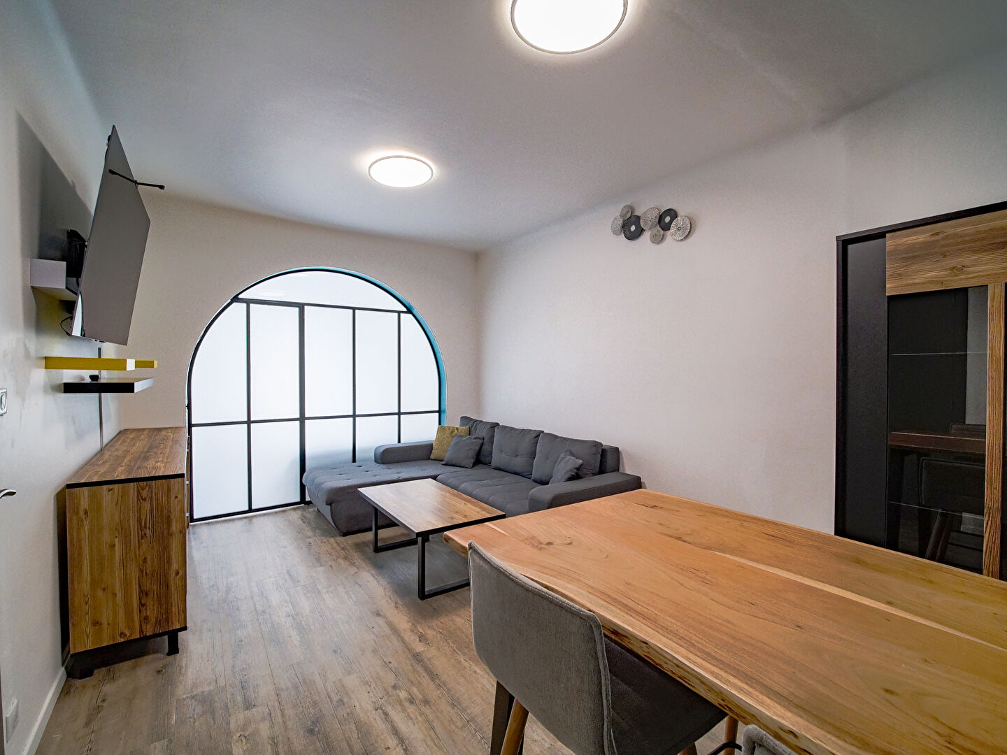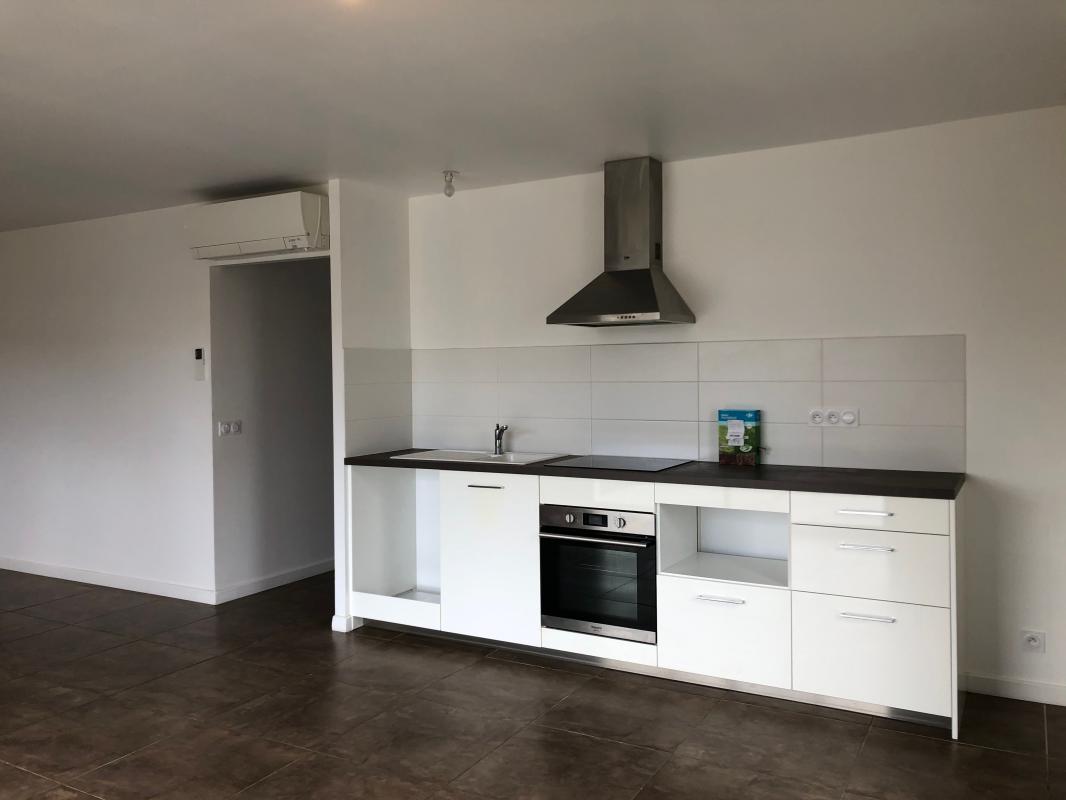 Maison louée meublée neuve de plain pied située dans un environnement calme, qui se compose d'une entrée, d'une cuisine aménagée et équipée (hotte, plaque, four, réfrigérateur), salon/séjour, avec climatisation réversible, une chambre avec placard, ...