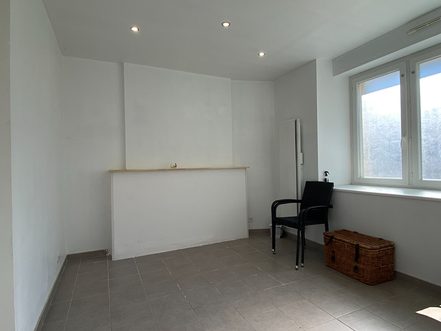 A louer, proche du centre-ville, maison mitoyenne composée au rez-de-chaussée, d'une entrée, un séjour avec cuisine ouverte, une buanderie, une salle de bains avec WC, et à l'étage, 2 chambres, un bureau et un WC.