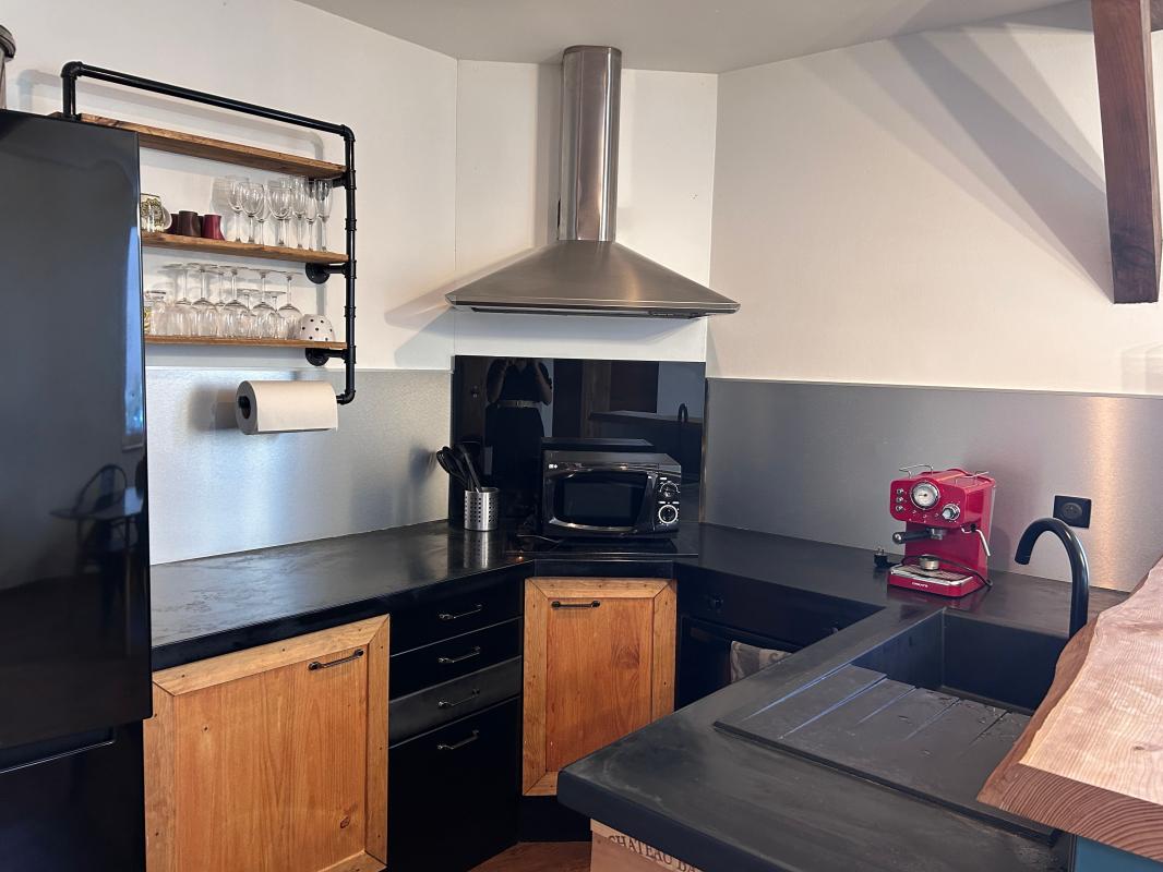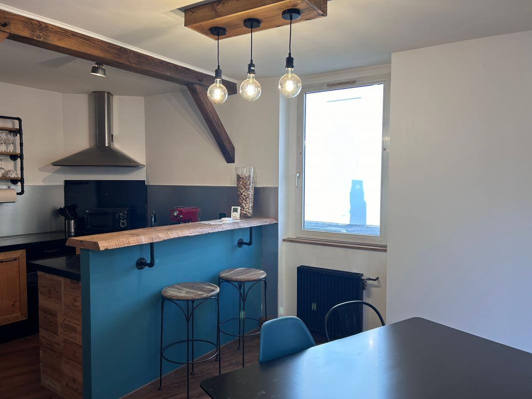 - Un séjour lumineux avec cuisine ouverte aménagée, également équipée d'un placard