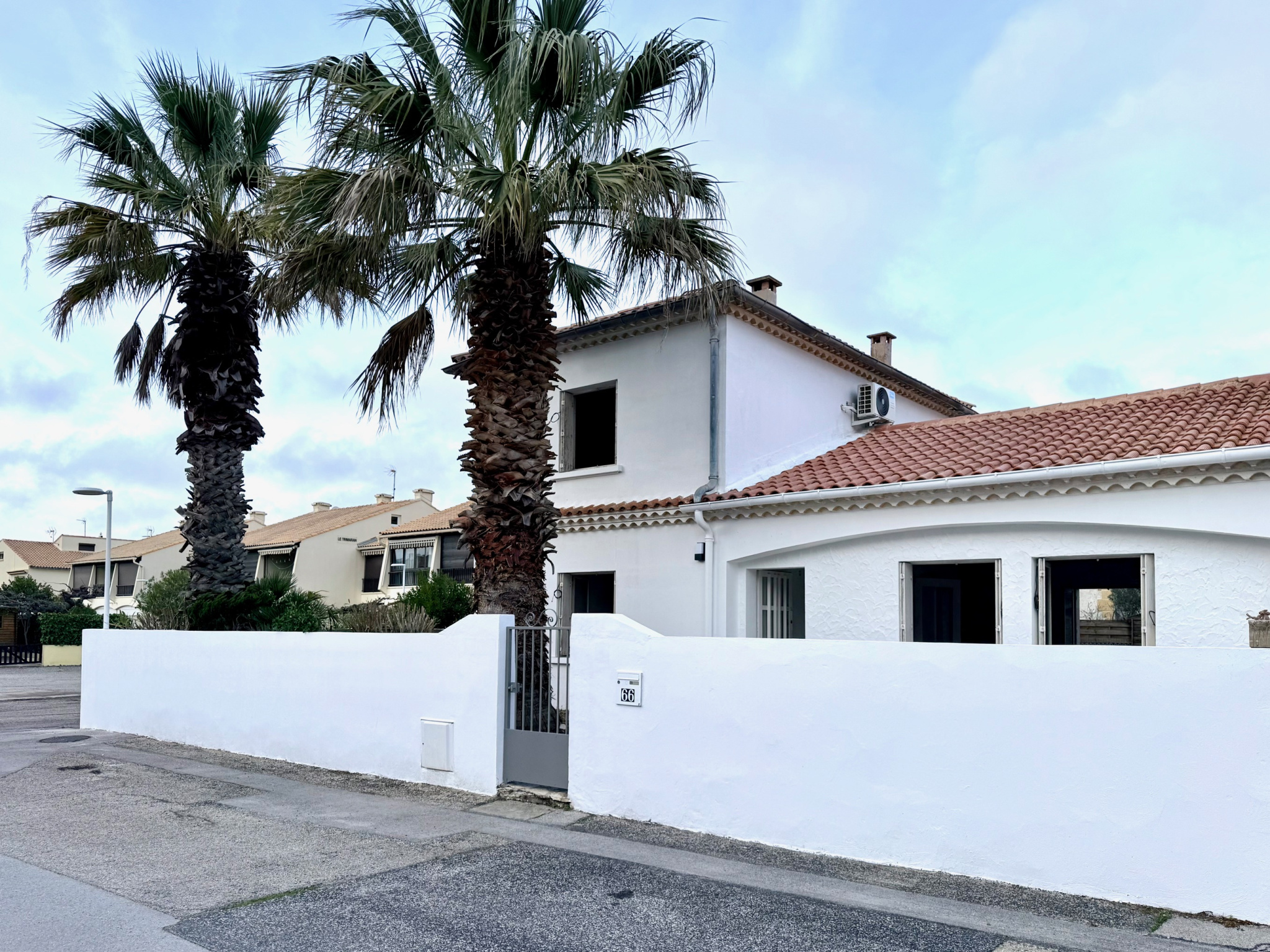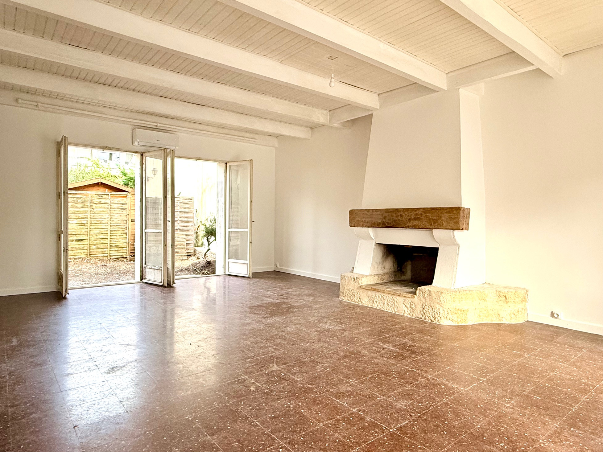 Le Grau du Roi, quartier Boucanet, secteur calme à 400 mètres de la plage, maison entièrement rénovée de 90 m2 sur 2 niveaux, comprenant : au rez de chaussée : entrée, pièces principale avec cheminée, terrasse, cuisine séparée aménagée neuve, arrière cuisine, ...