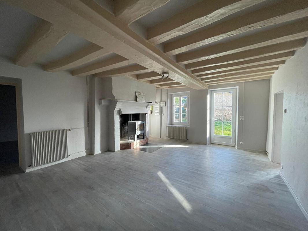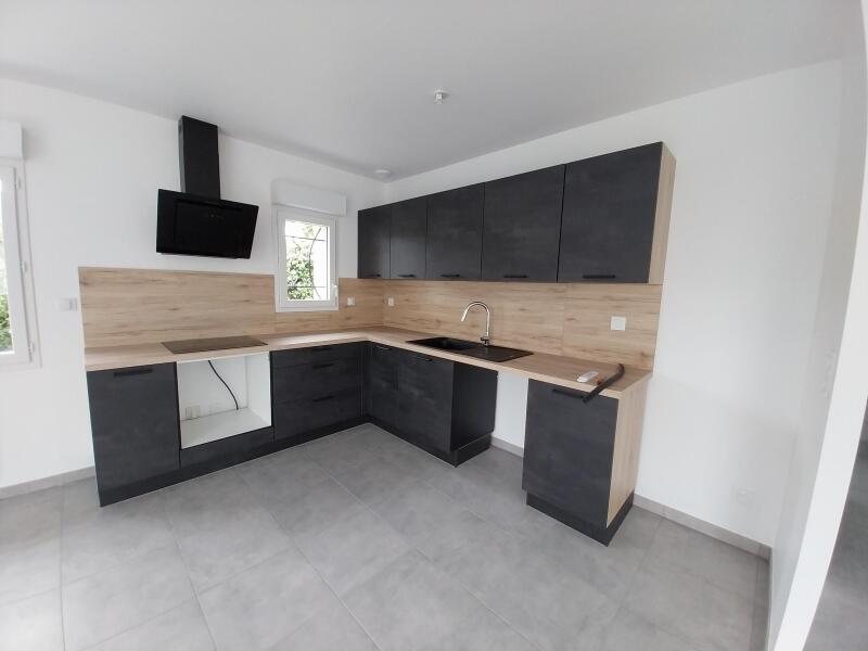 A louer Maison de plain-pied d'environ 86 m2 comprenant une entrée, une séjour-salon cheminée-insert, une cuisine aménagée et équipée, 3 chambres, une salle d'eau et un wc.