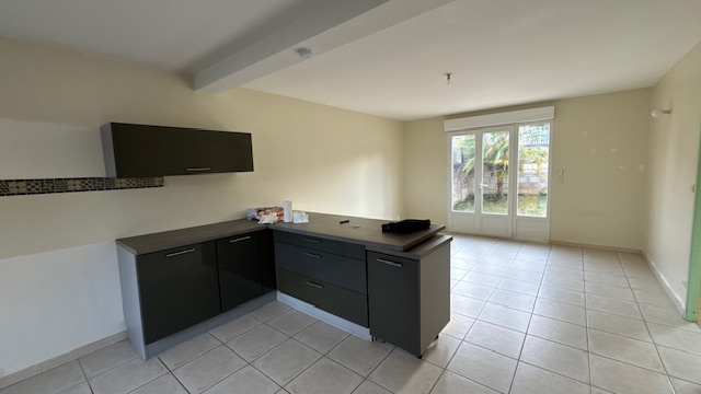 Maison des années 80 dans secteur calme comprenant double salon, cuisine aménagée et équipée.
