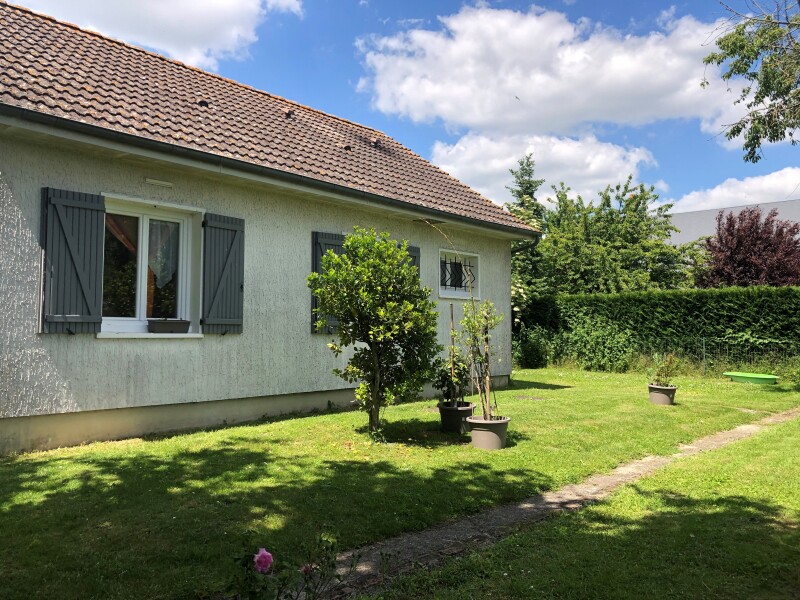 ORLEANS SUD, pavillon des années 60 sur jardin clos comprenant une cuisine aménagée et équipée (plaque de cuisson, four et hotte), séjour, 3 chambres, salle d'eau, wc. Nombreuses dépendances au sous sol.