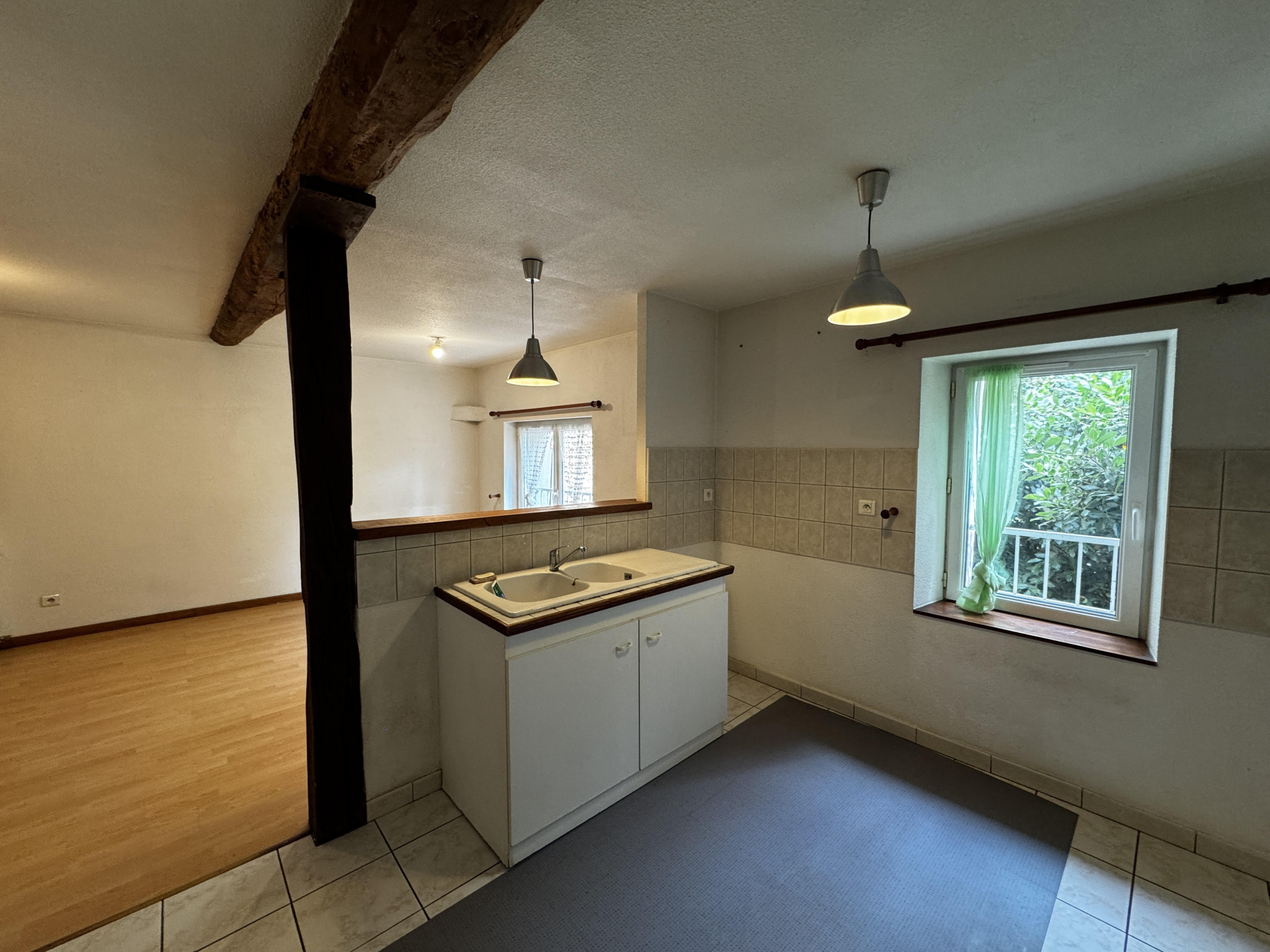 À louer T4 comprenant au rez-de-chaussée une entrée, un salon/séjour avec cuisine ouverte, buanderie et WC.