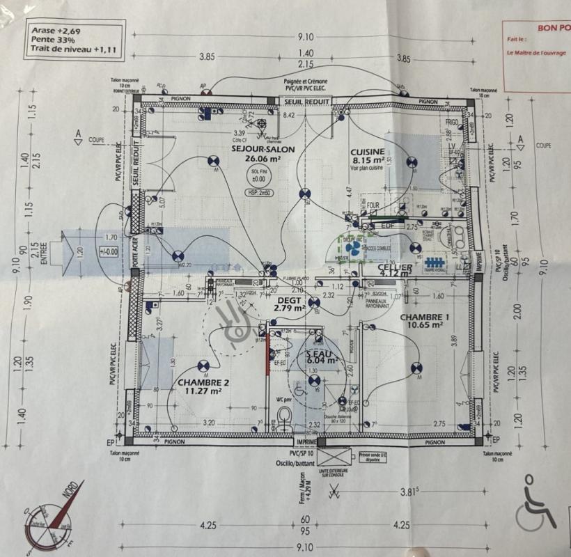 Maison T3 mitoyenne de 84m2 avec 244m2 de jardin, composée de :