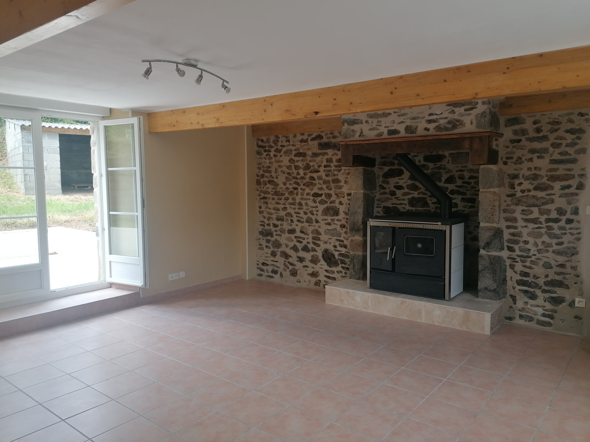Maison comprenant un séjour, un coin cuisine avec un insert bois.