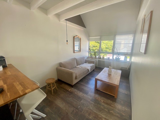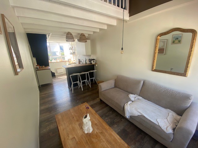 Une maison meublée à l'année, comprenant un séjour ouvert sur une cuisine équipée et aménagée, une chambre traversante sur une seconde chambre, une salle d'eau avec un WC.
