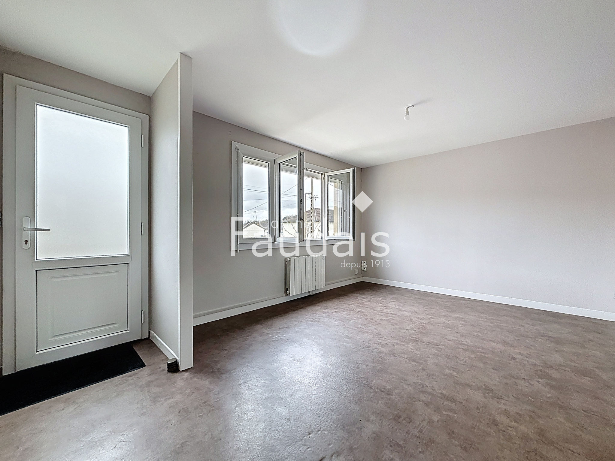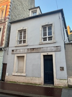 CHERBOURG Centre (50100) maison de ville sur 2 niveaux comprenant en RDC : une entrée, une chaufferie, une chambre. Au 1er étage, dégagement, cuisine, séjour-salon et WC.
