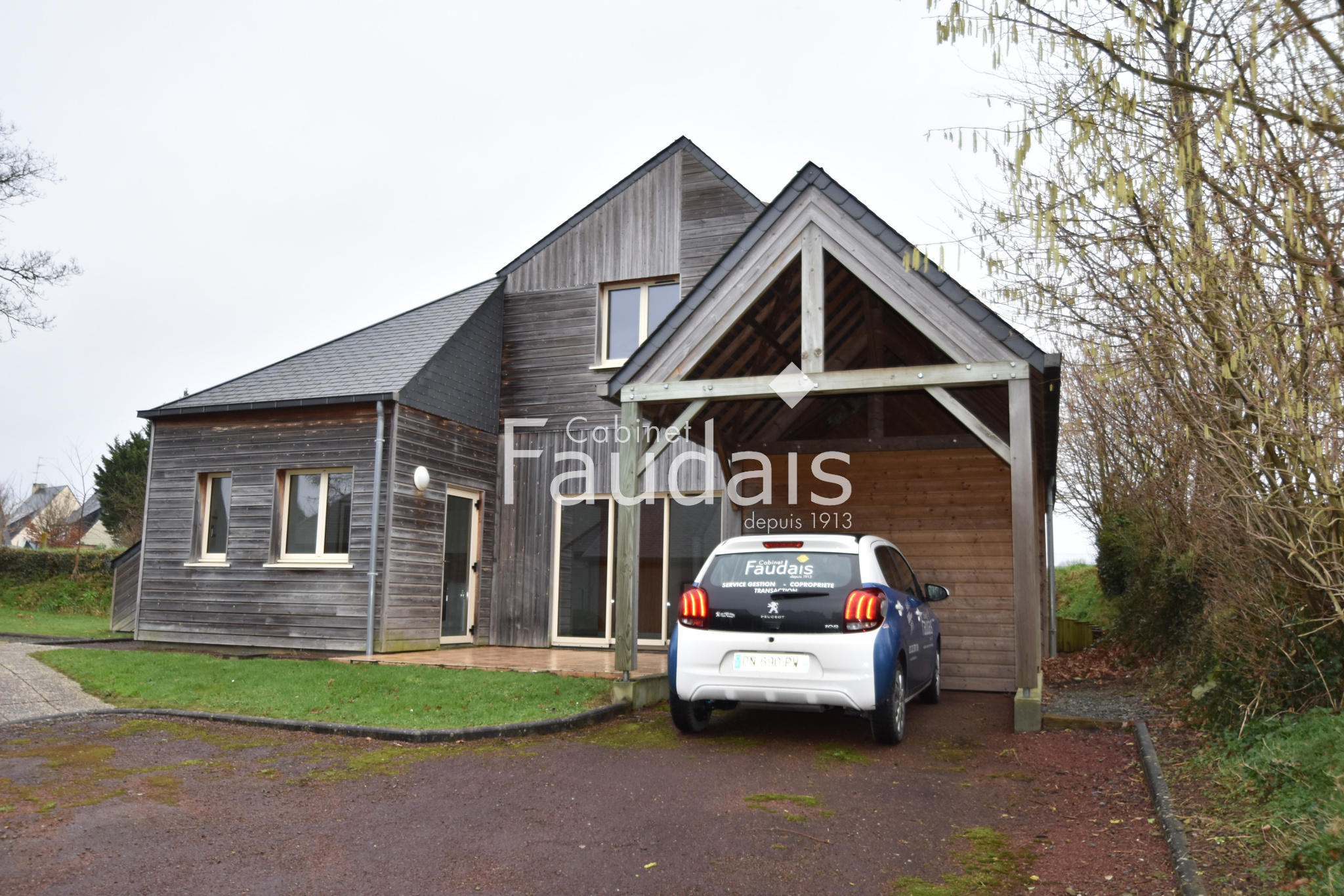 Entre Coutances et Saint Lô, belles prestations pour ce pavillon en bois avec terrasse, carport, cellier et jardin d'environ 460m2 comprenant: au rdc: entrée avec placards, cuisine aménagée et semi-équipée (plaques de cuisson, four et hotte) ouverte sur l...