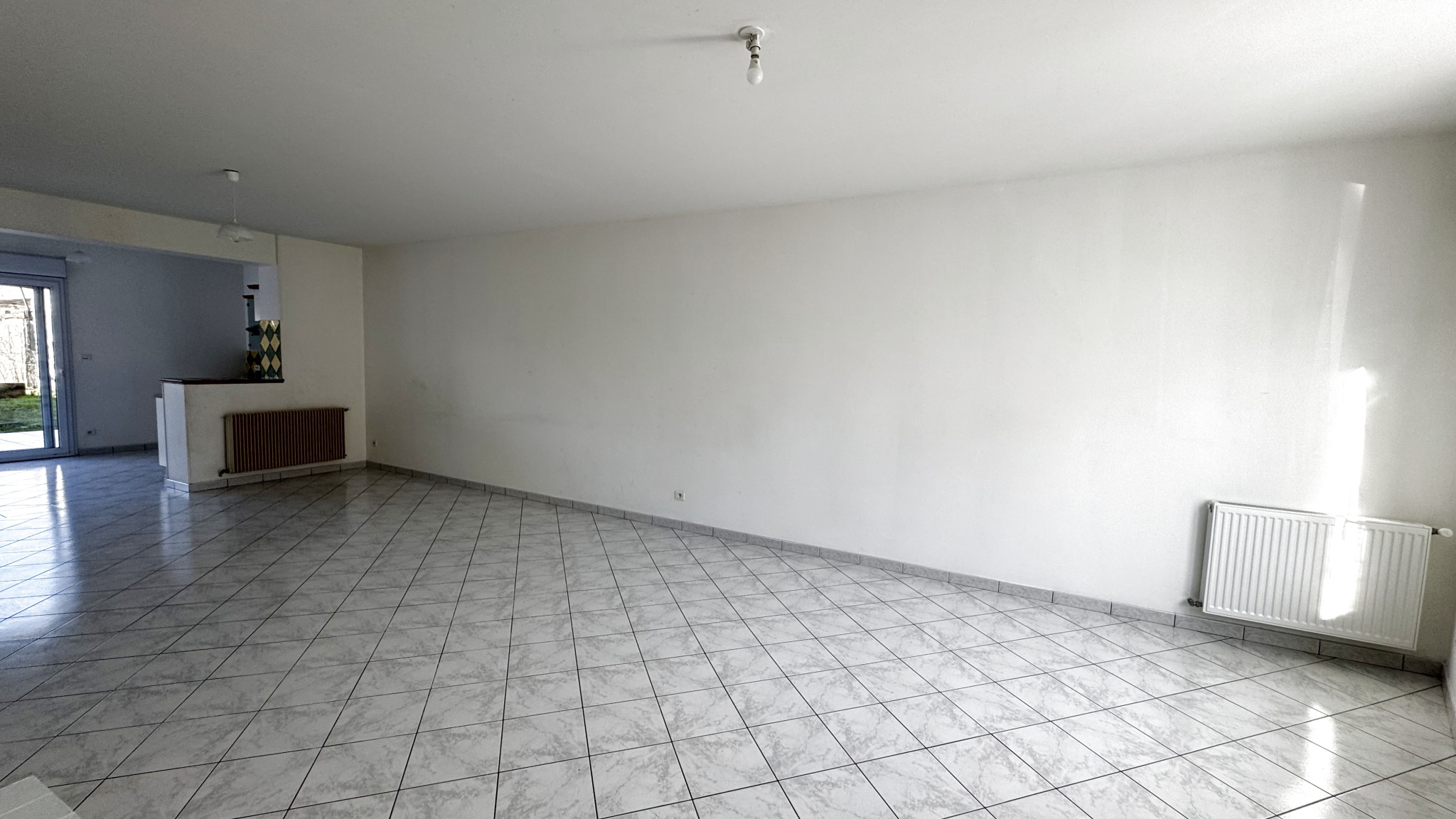 A 2 pas du centre ville de Marmande, maison de 4 pièces comprenant une entrée sur un grandepièce de vie lmineuse, une cuisine ouverte et equipée donnant sur un jardin, un cellier, un WC.