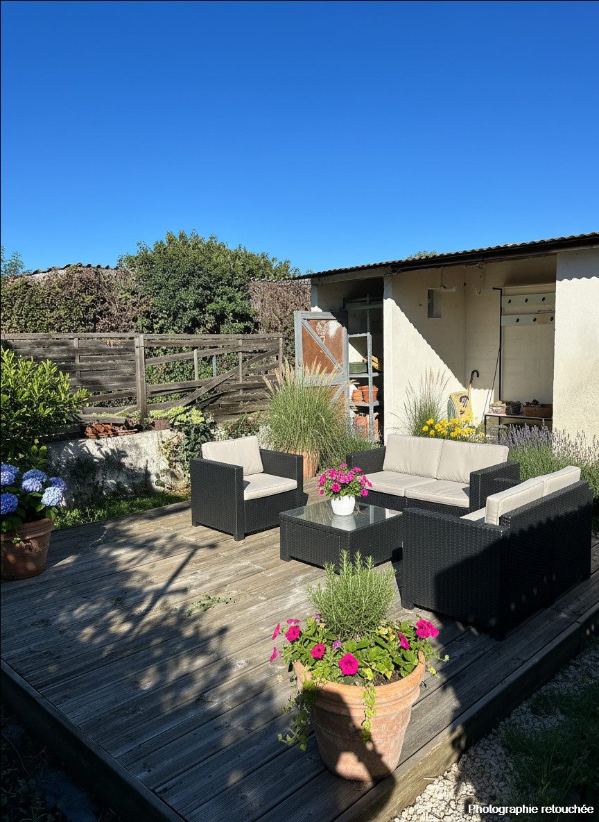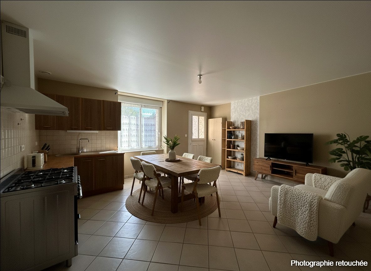 Maison de ville T3 située à Marssac sur Tarn comprenant au rdc un séjour et une cuisine aménagée ouverte, une salle d'eau avec wc, un cellier. Au 1er étage vous trouverez deux chambres avec placards et un wc avec une vasque et son meuble. Un petit terrain...