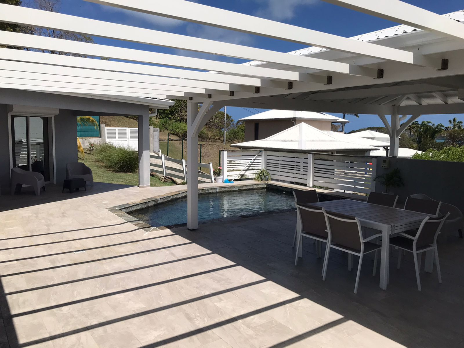 Très belle villa meublée de conception récente (2017) située au sud du François dans un lotissement de villas à proximité de la mer.