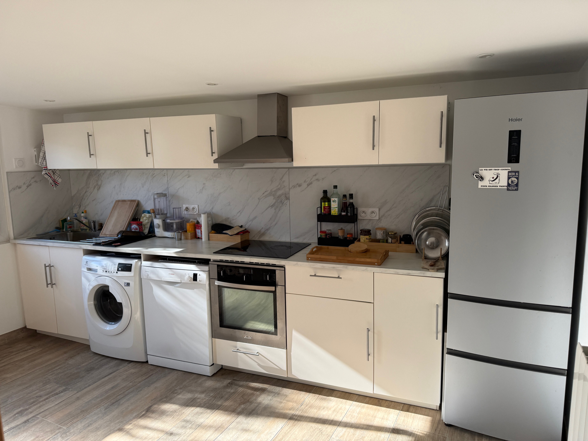 Proche de toutes les commodités, maison de plain pied, T3/4 de 76 m2 environ comprenant un salon / séjour lumineux, une cuisine séparée partiellement aménagée et équipée donnant accès à la terrasse, deux chambres + un bureau, une salle d'eau et wc. Petite...