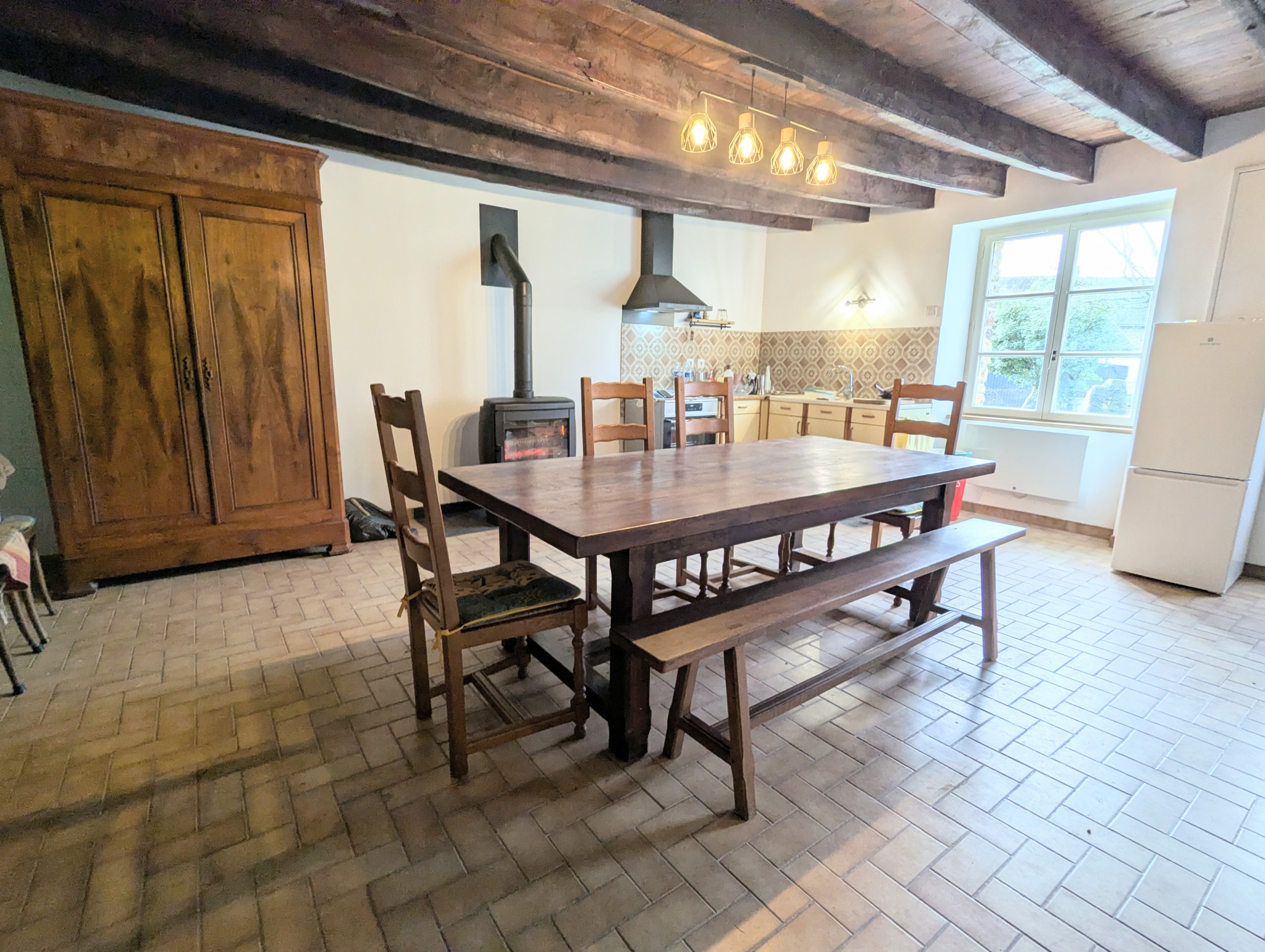 A LOUER à MAXENT, une maison T3 meublée récemment rénovée composée d'une pièce de vie équipée d'un poêle à bois ouvrant sur une cuisine aménagée et équipée, deux chambres, une salle d'eau et un WC.