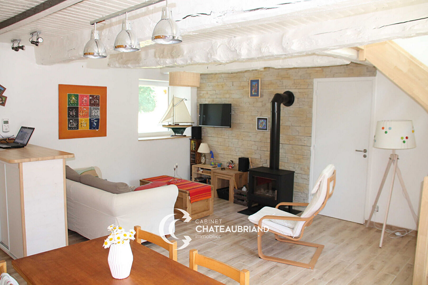 Elle offre au rez-de-chaussée une pièce de vie ouverte sur une cuisine aménagée et éq...
