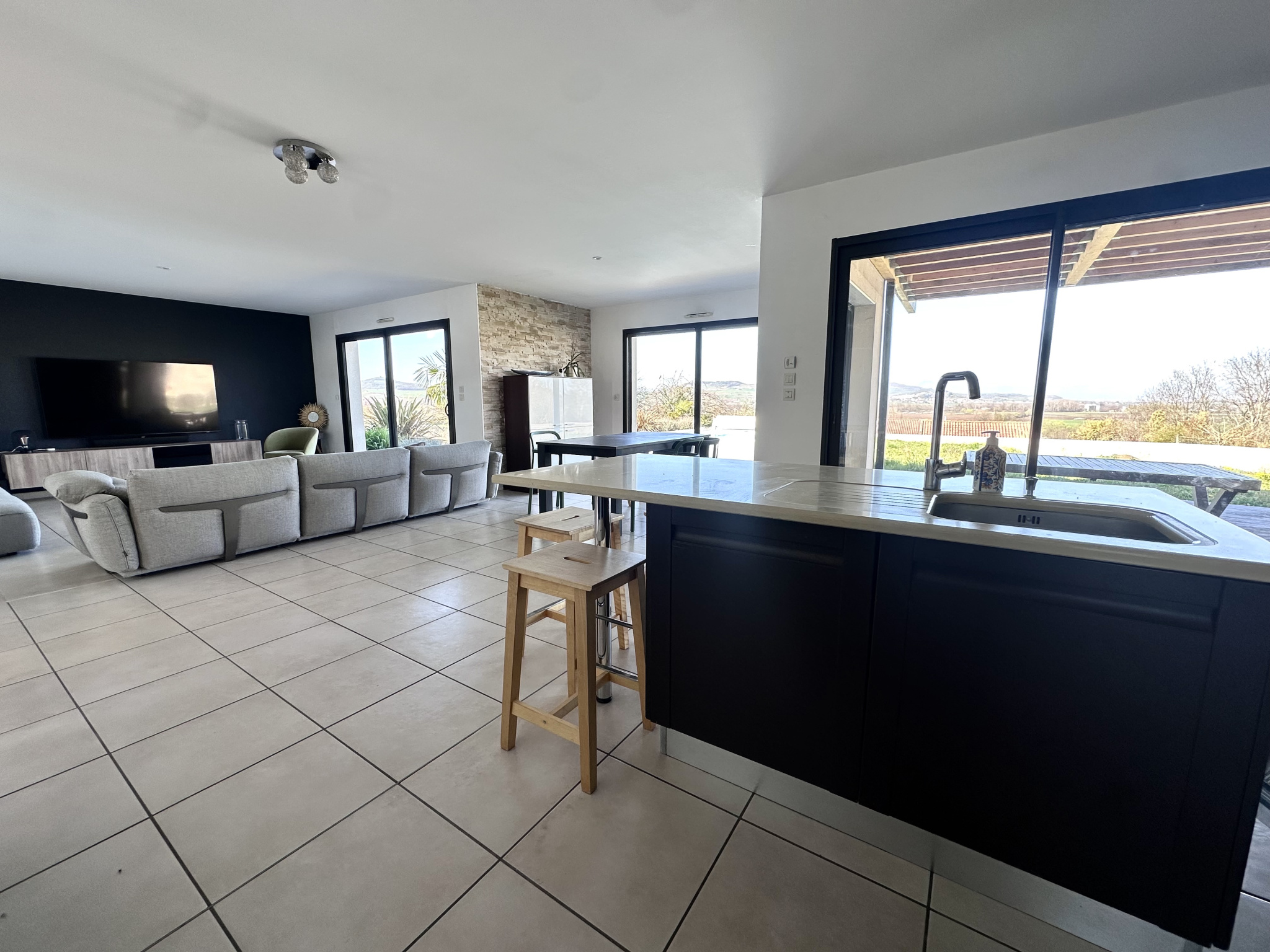 Située dans un environnement calme et agréable, cette maison de plain-pied, louée meublée, offre un cadre de vie confortable et des prestations soignées.