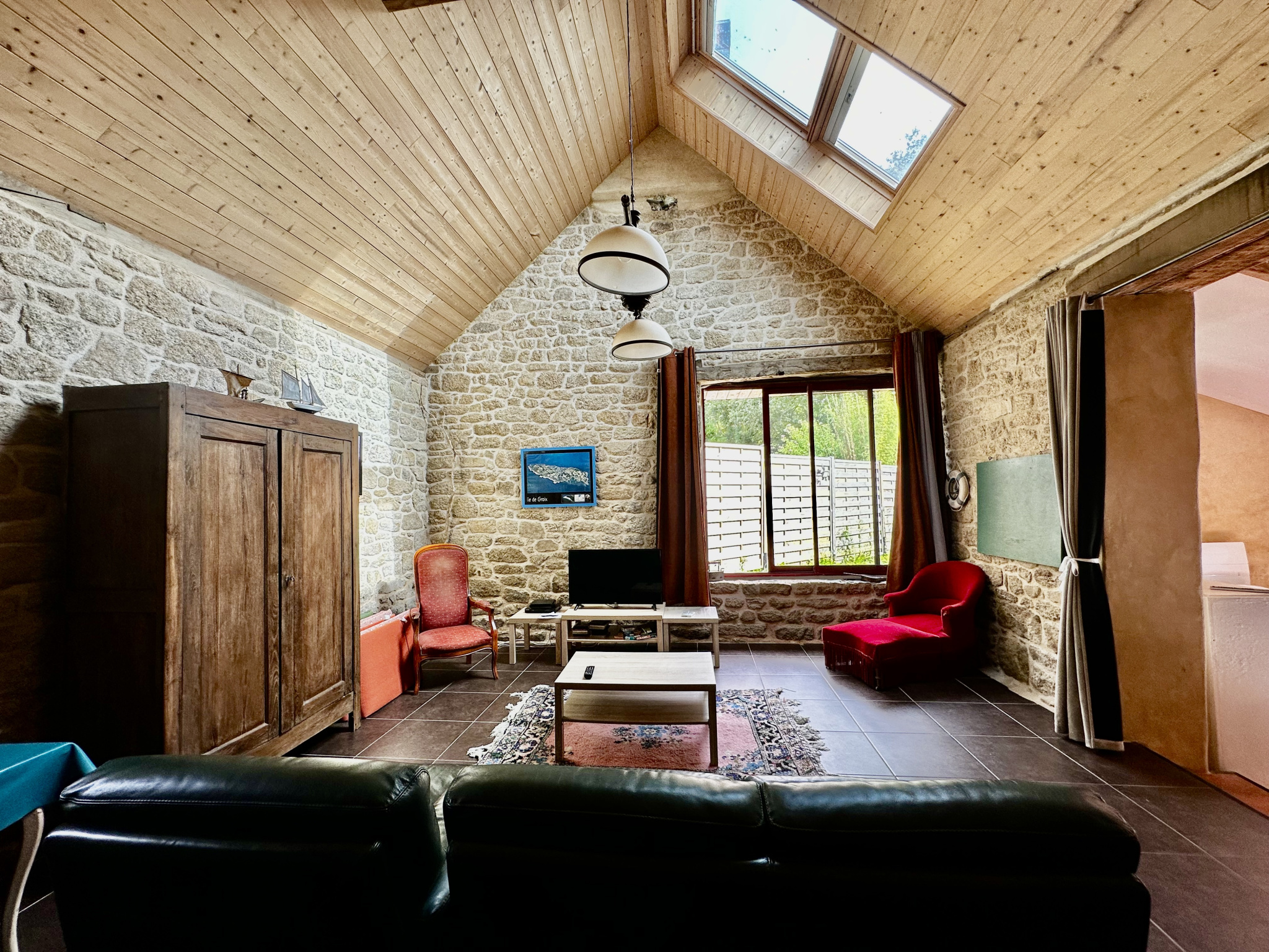 Longère rénovée de 100m2 offrant: cuisine aménagée, grande salle avec cheminée insert, wc
