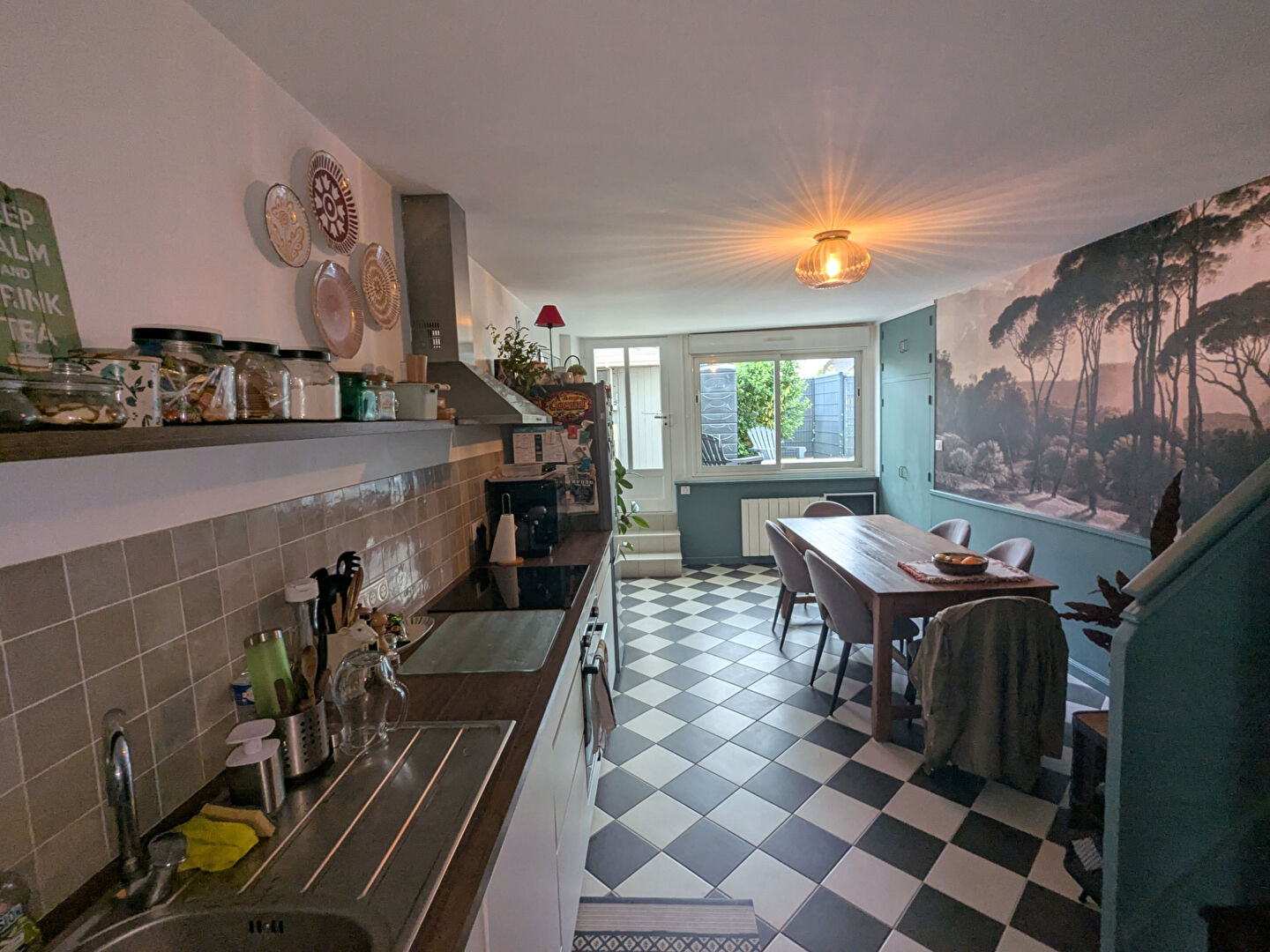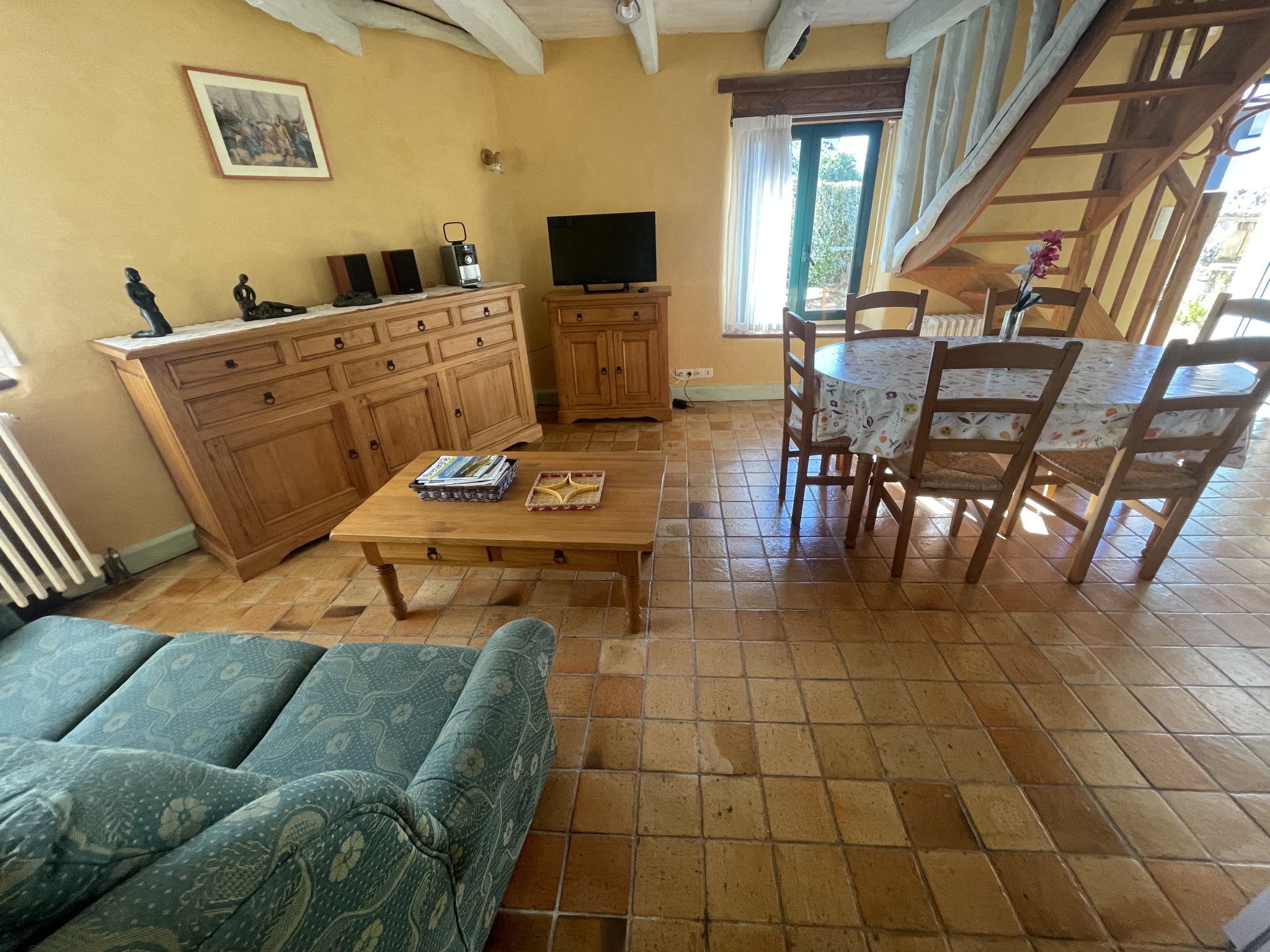 NOUVEAUTE ! A louer maison meublée 3 pièces de 79.30 m2 avec au rez-de-chaussée, un salon/séjour avec un piano, une cheminée non fonctionnelle, une cuisine ouverte aménagée/équipée (gazinière, lave-vaisselle), salle d'eau comprenant une douche, un wc.