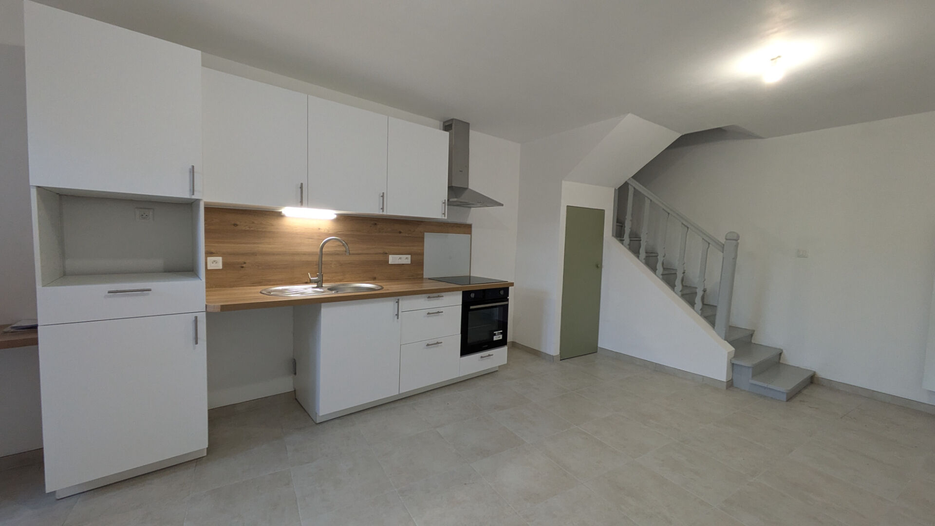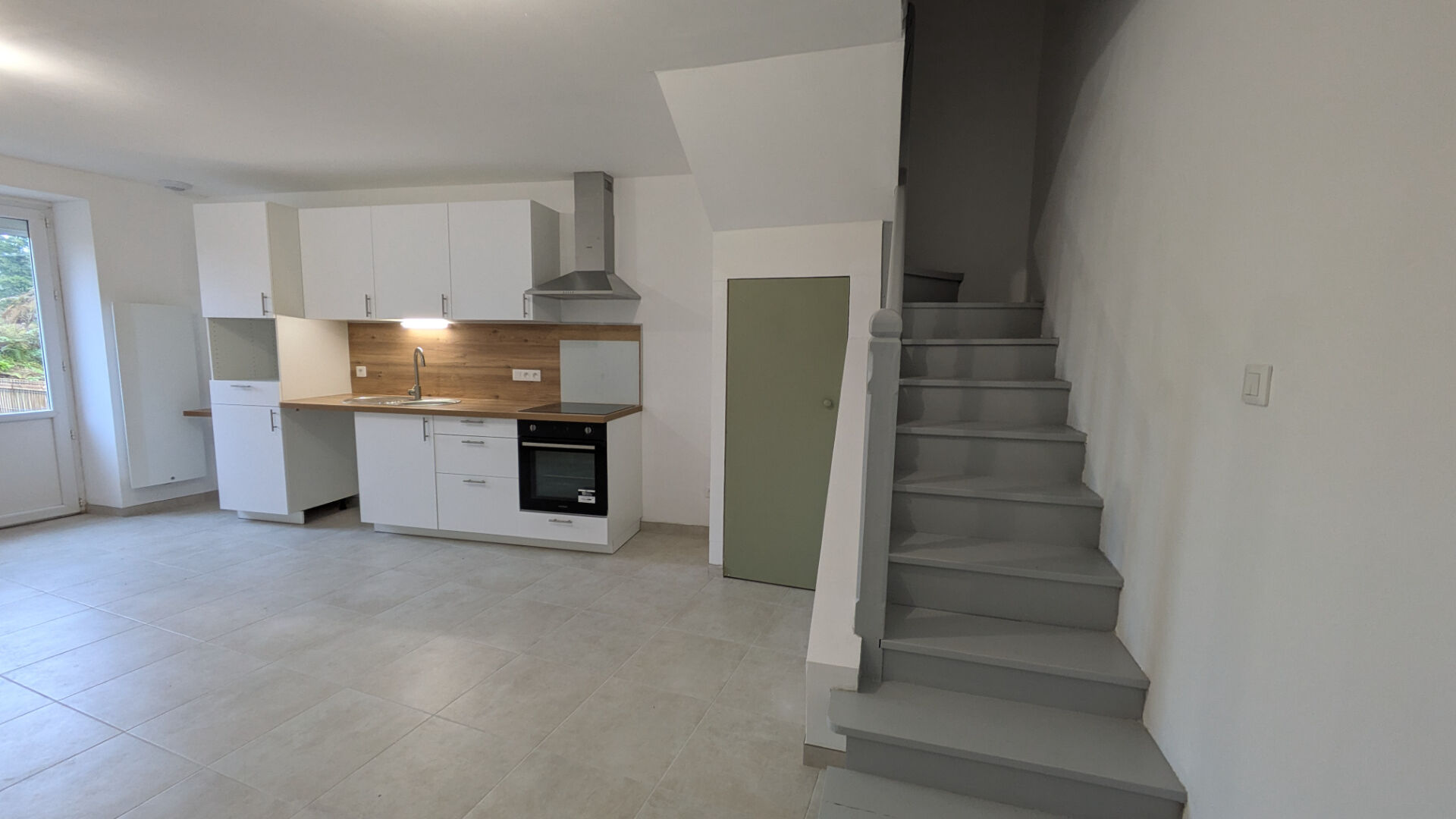 Une maison T3 de 48.70m², sur deux niveaux, mitoyenne des deux côtés, comprenant au rez-de-chaussée, une entrée sur pièce de vie avec cuisine aménagée et équipée (plaque électrique, four et hotte) et un placard avec branchement pour machine à laver. Au 1er éta...