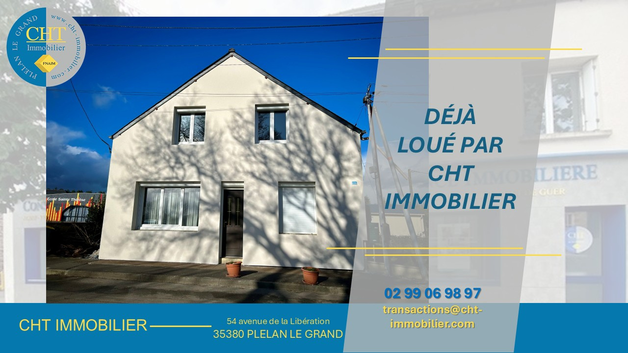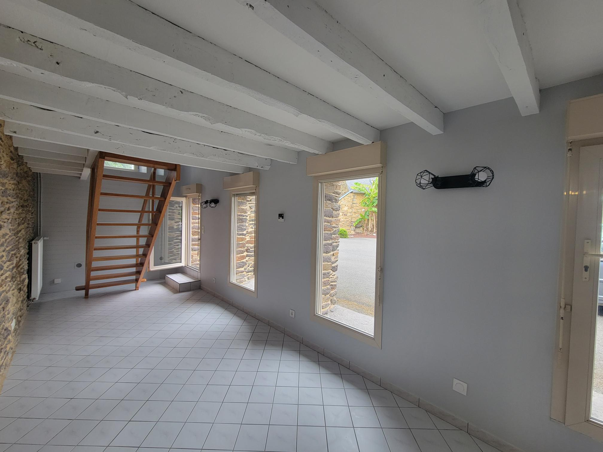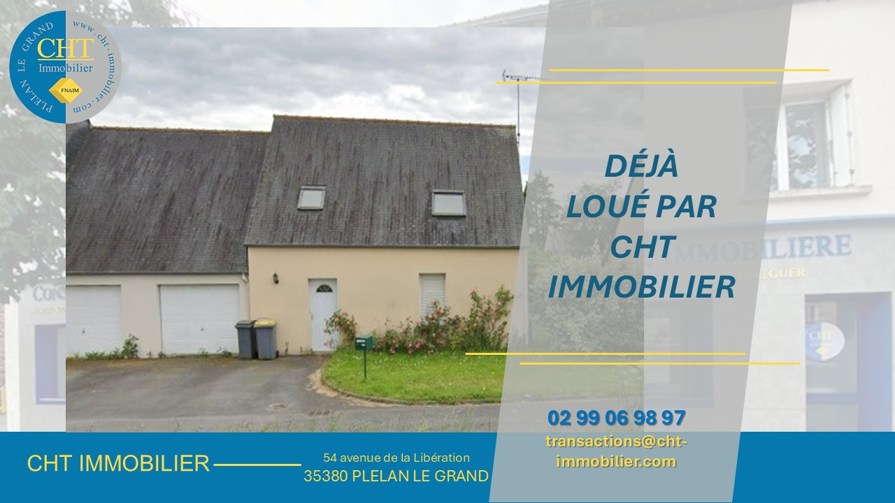 A louer sur GUER, une maison d'habitation composée au rez-de-chaussée d'un dégagement desservant un salon/séjour ouvert sur une cuisine aménagée et équipée, une chambre, une salle d'eau et un WC.