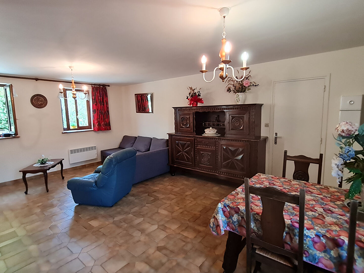 Une maison T2 de 58.65m², en pierres, mitoyenne des 2 côtés, comprenant une entrée sur salon séjour avec espace cuisine équipée d'une hotte, une buanderie et des WC séparés. A l'étage, un palier desservant une chambre avec placard et une salle d'...