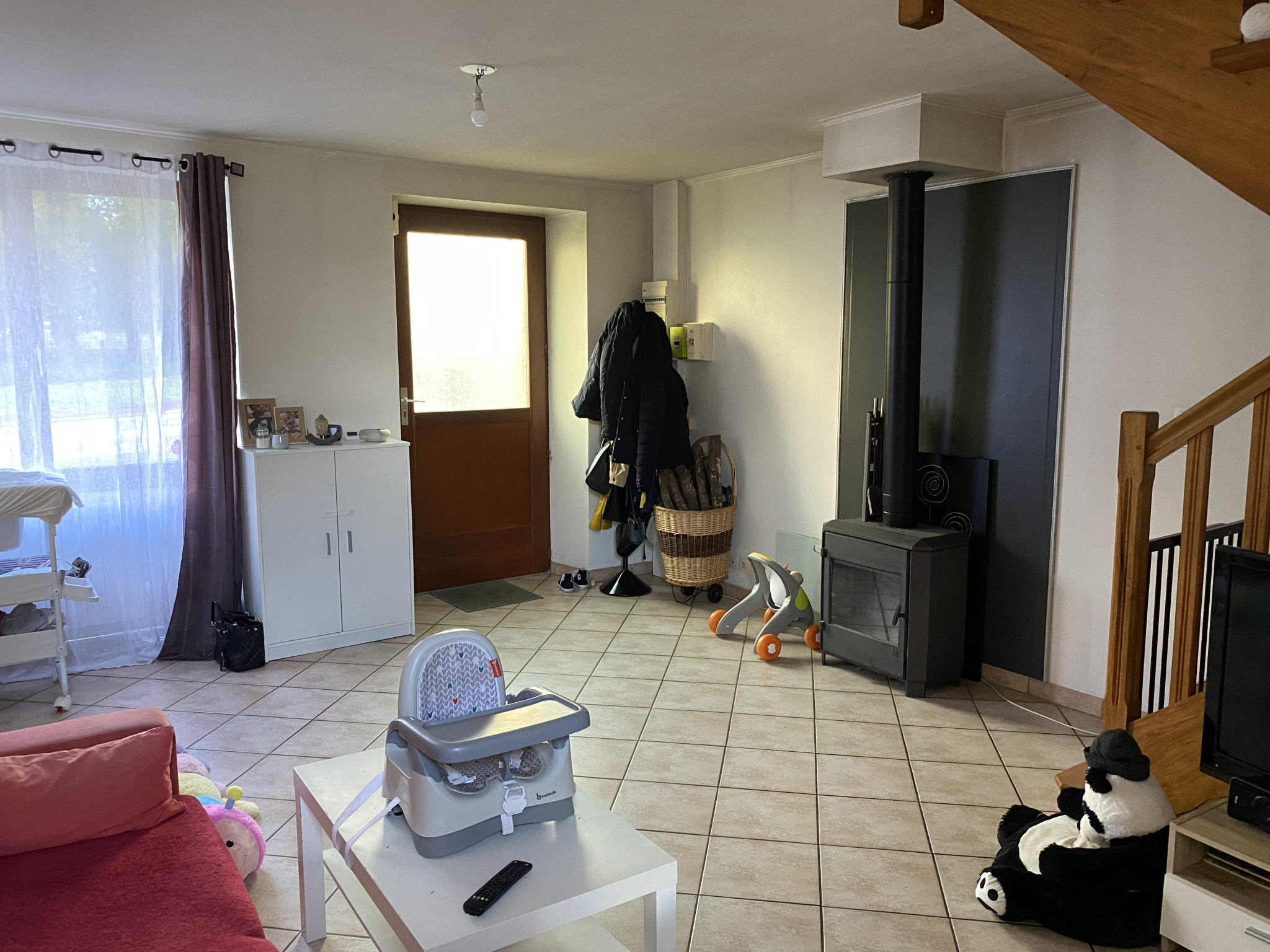Elle se compose au rez-de-chaussée : d'une belle pièce de vie d'environ 50 m2 avec un poële à granulé...