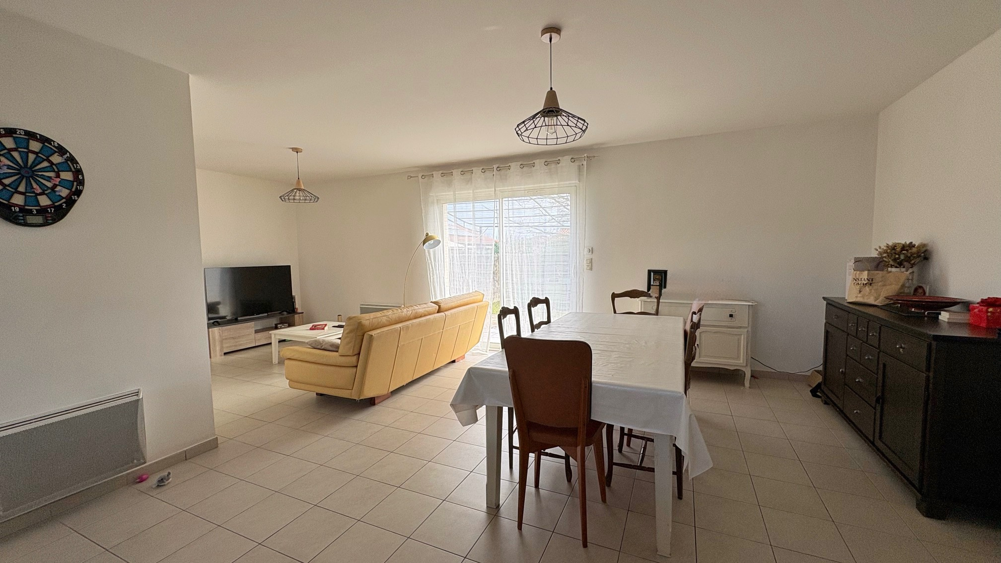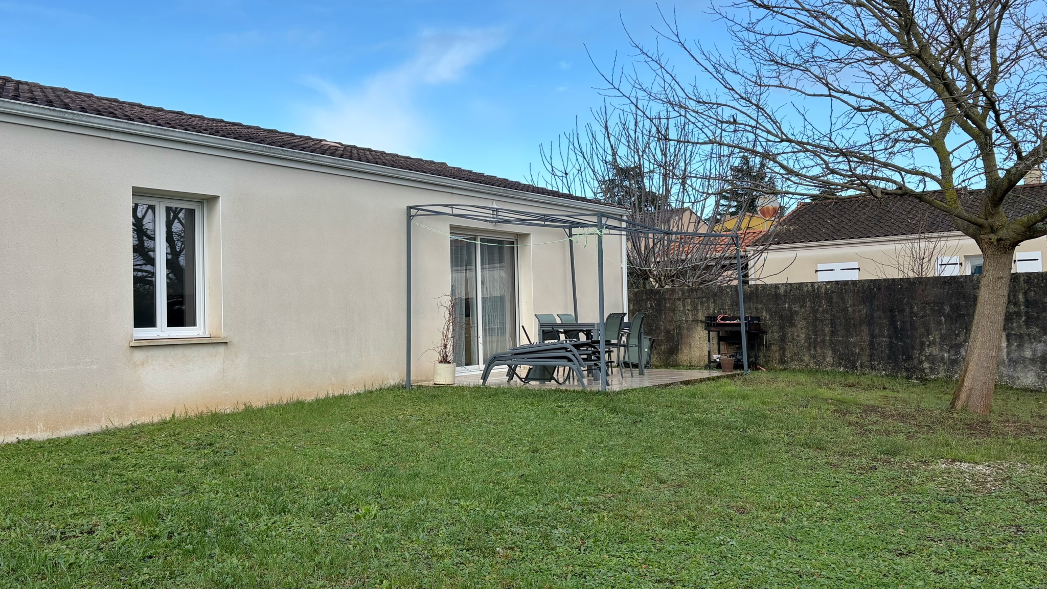 Niort, quartier des Brizeaux - Pavillon de plain-pied T4 d'une surface habitable d'environ 92m2 comprenant : entrée, salon/séjour avec cuisine ouverte aménagée et en partie équipée (hotte, gazinière), dégagement, trois chambres, salle-de-bains avec d...
