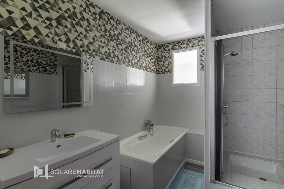- A l'étage : chambre avec salle de bain.