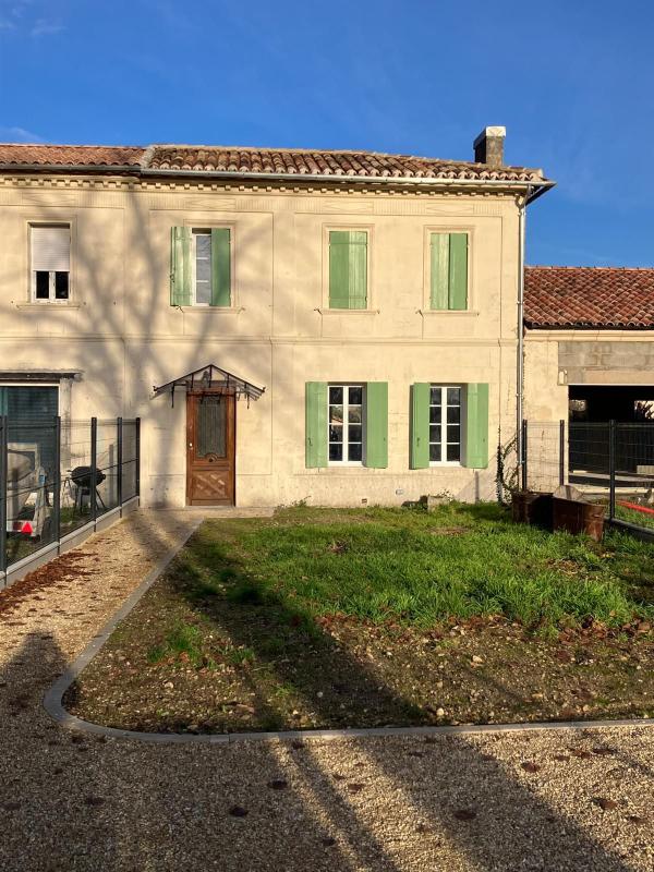 Léognan, maison mitoyenne comprenant entrée, séjour, cuisine aménagée (placards et plaque), 2 chambres, salle de bains, wc, jardinet non clos, chauffage gaz de ville, libre début février.