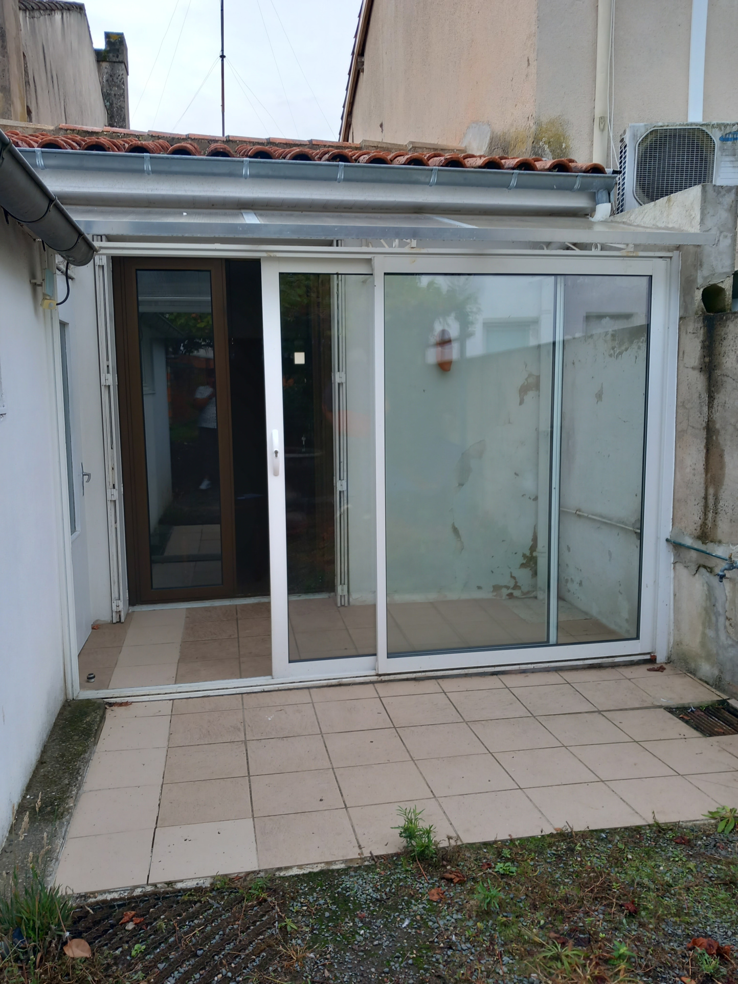 Une petite maison mitoyenne de plain pied avec jardinet et terrasse.