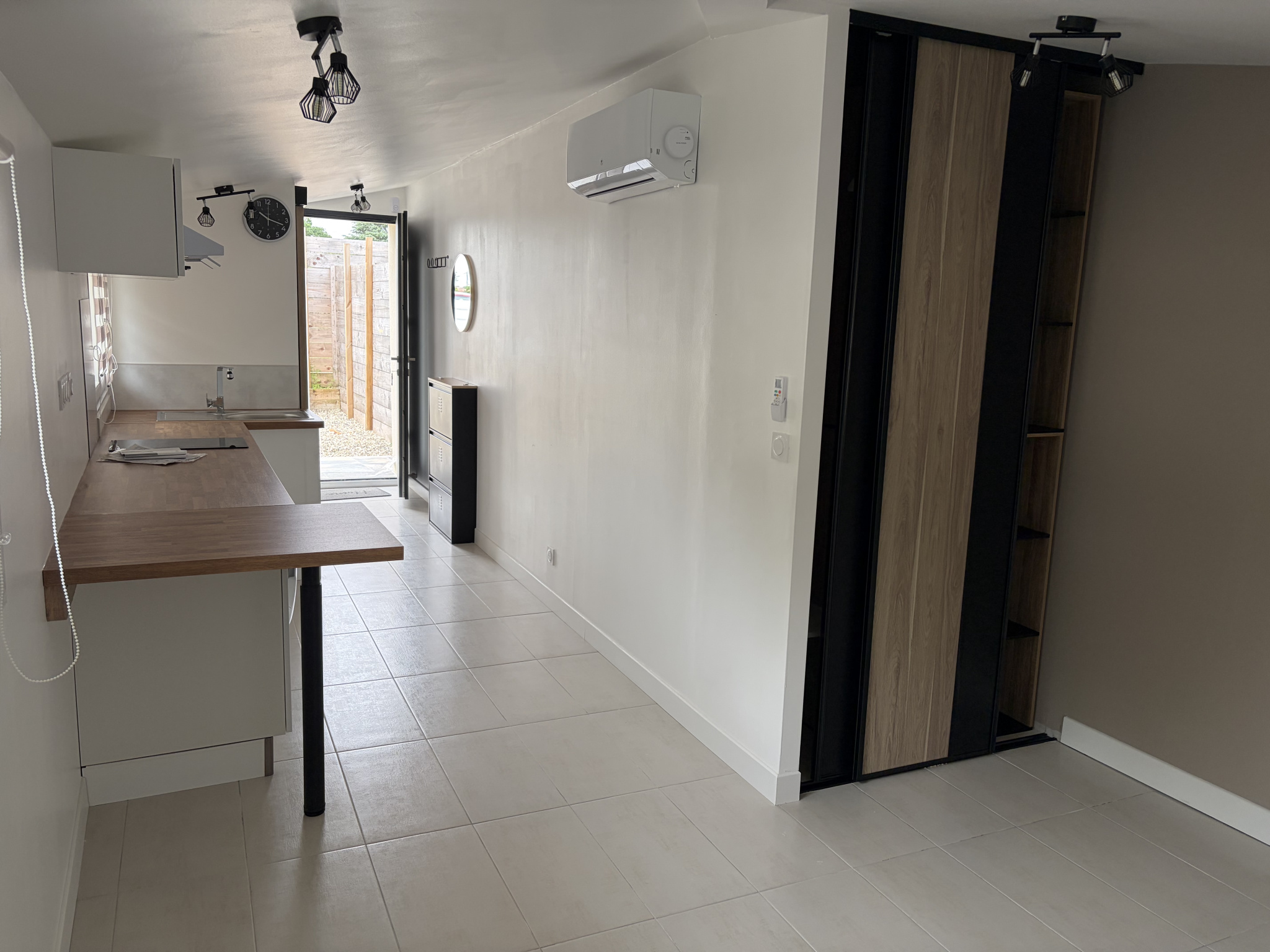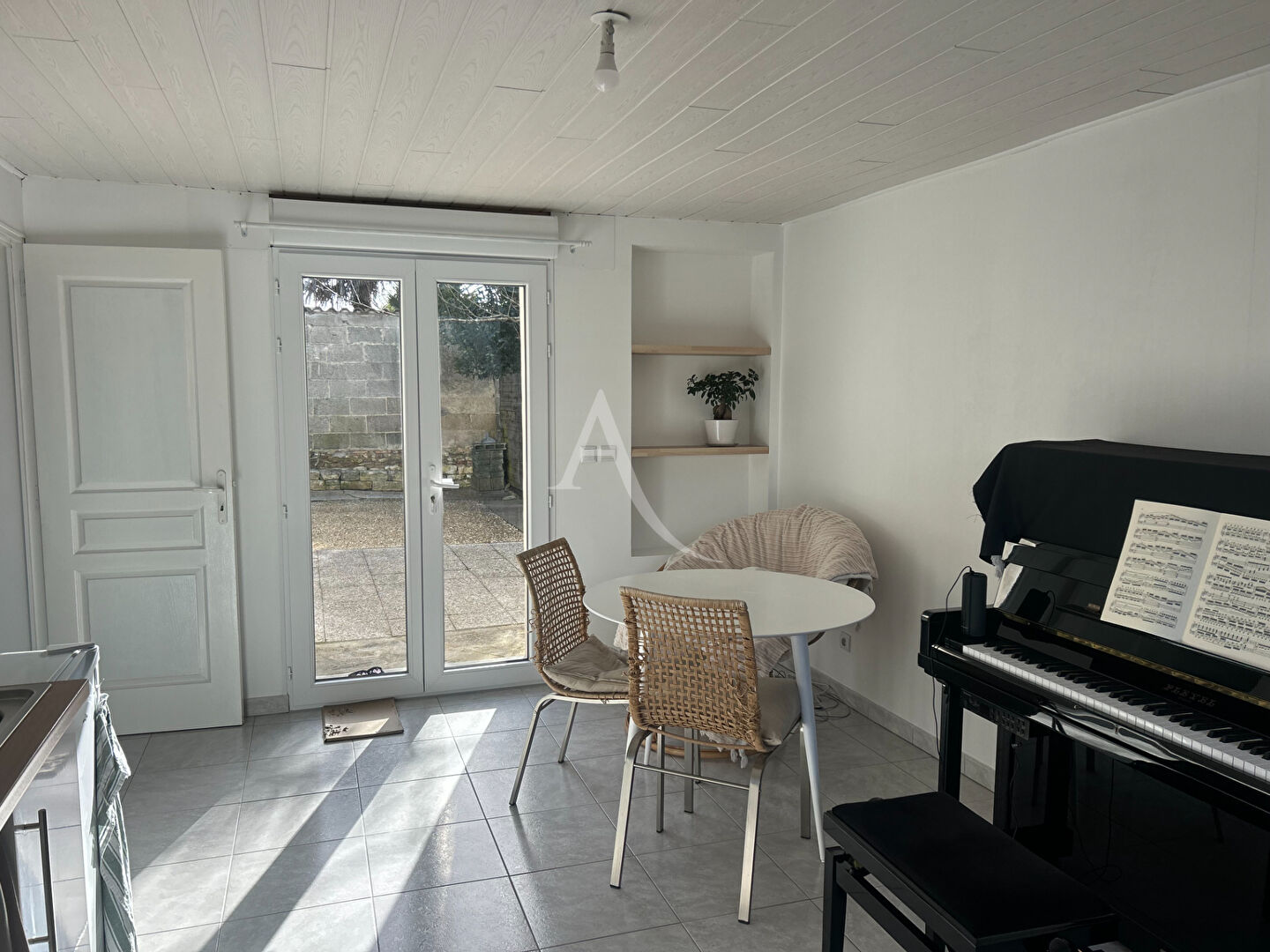 Elle se compose d'une agréable pièce de vie avec cuisine ouverte sur le salon, offrant un espace convivial et fonctionnel.