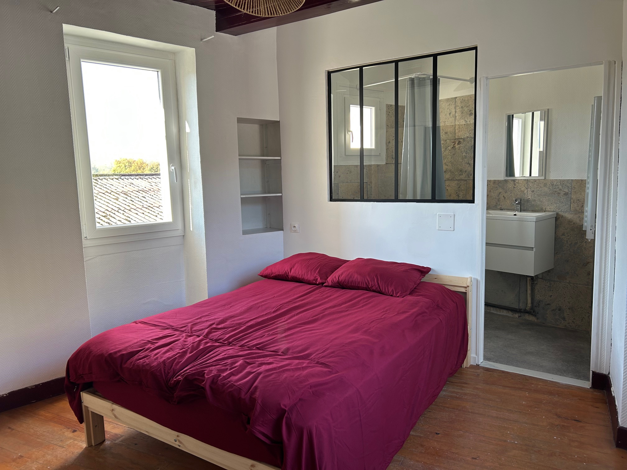 Dans une maison de plain pied entièrement rénové en 2022 , chambre de 16 m2 équipée d'un lit double...
