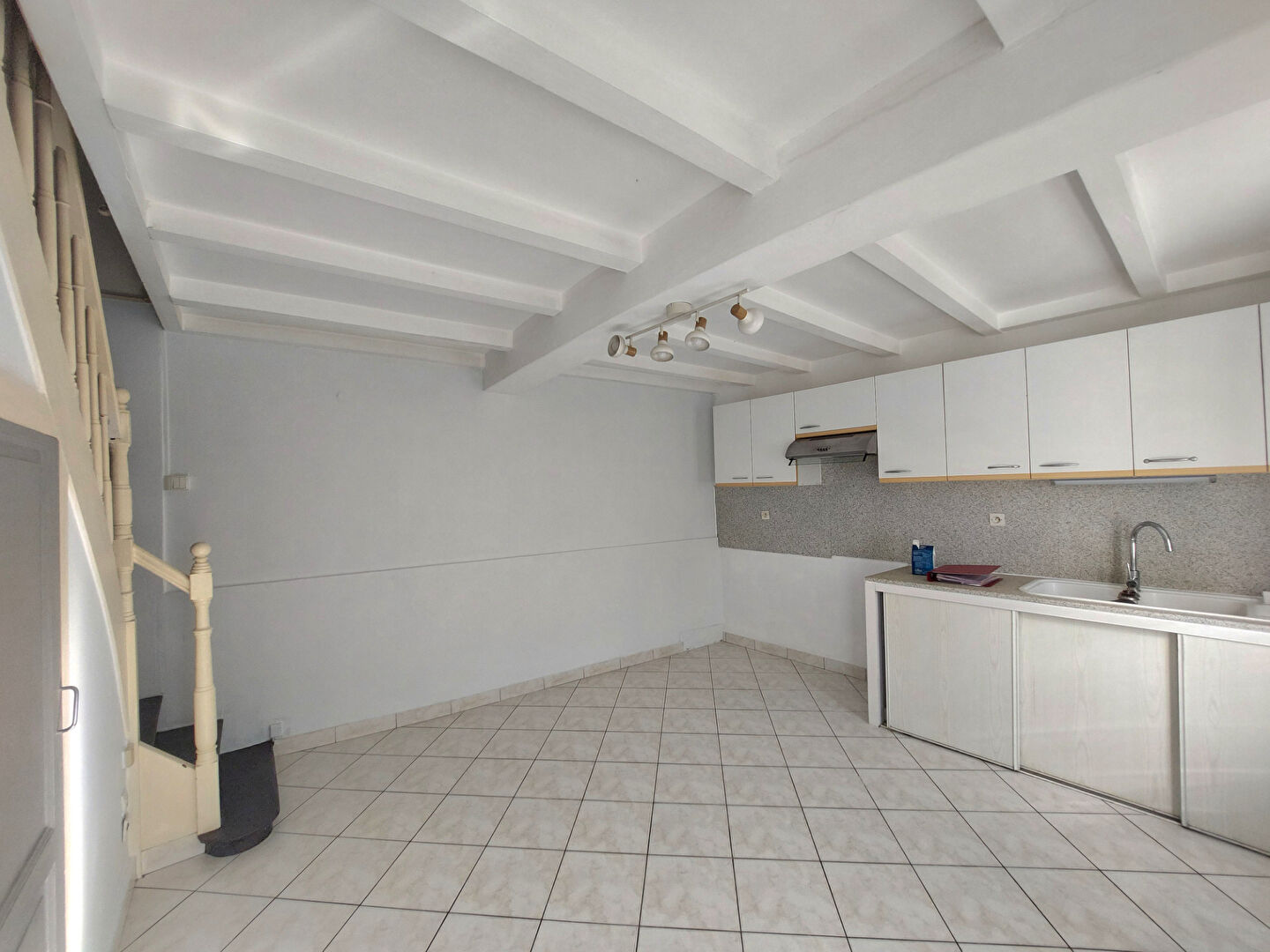 Libre de suite - Maison de ville de type 3 située rue Véron à Cognac comprenant au rez-de-chaussée un séjour, une chambre, une cuisine aménagée et équipée (four, plaque et hotte) et des toilettes. Le premier étage comprend une seconde chambre et une salle d...