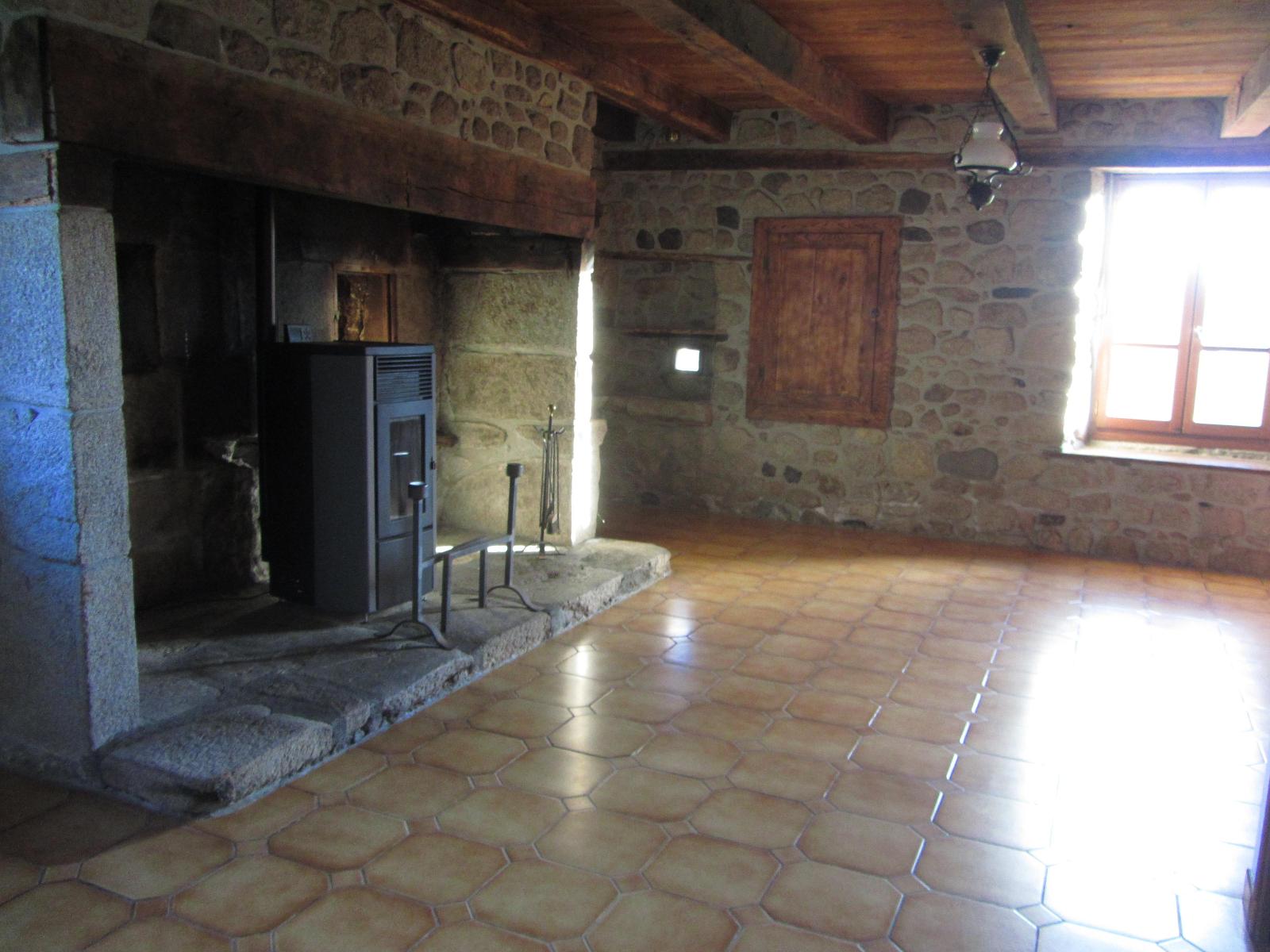 15 MINUTES DE BORT - Maison de plain pied de 92 m² comprenant entrée, cuisine équipée (placards, plaque de cuisson, réfrigérateur-congélateur), séjour de 32 m² avec poêle à granulés, 2 chambres, une pièce, salle de bains, wc, buanderie.