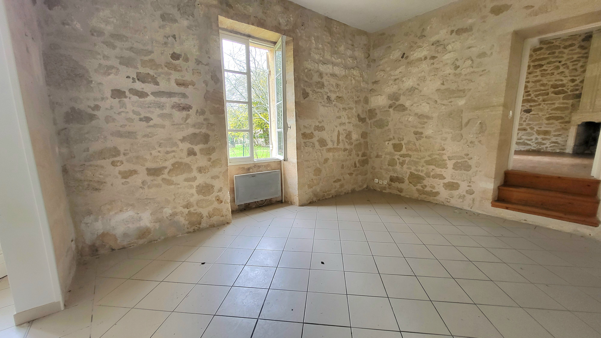 Pièce principale avec coin salon/séjour et cuisine aménagée de 36m2, wc, accès direct à la cour et dépendance.