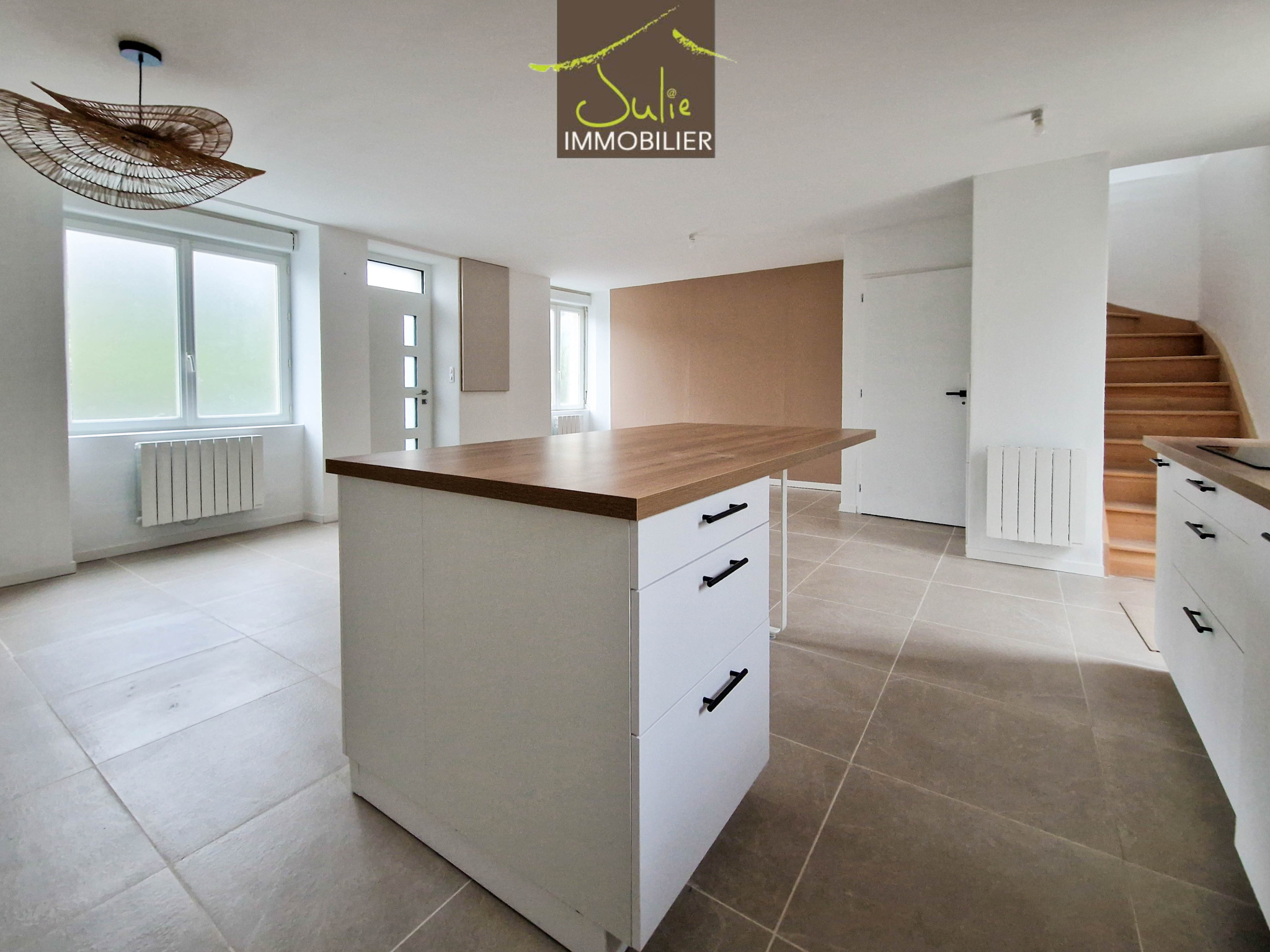 Maison de type F3 entièrement rénovée avec jardin non clos comprenant en rez-de-chaussée une cuisine équipée avec placards, plaque vitro 2 feux, hotte et four, un séjour avec cheminée non fonctionnelle, une salle d'eau et un WC. A l'étage, 2 chambres...