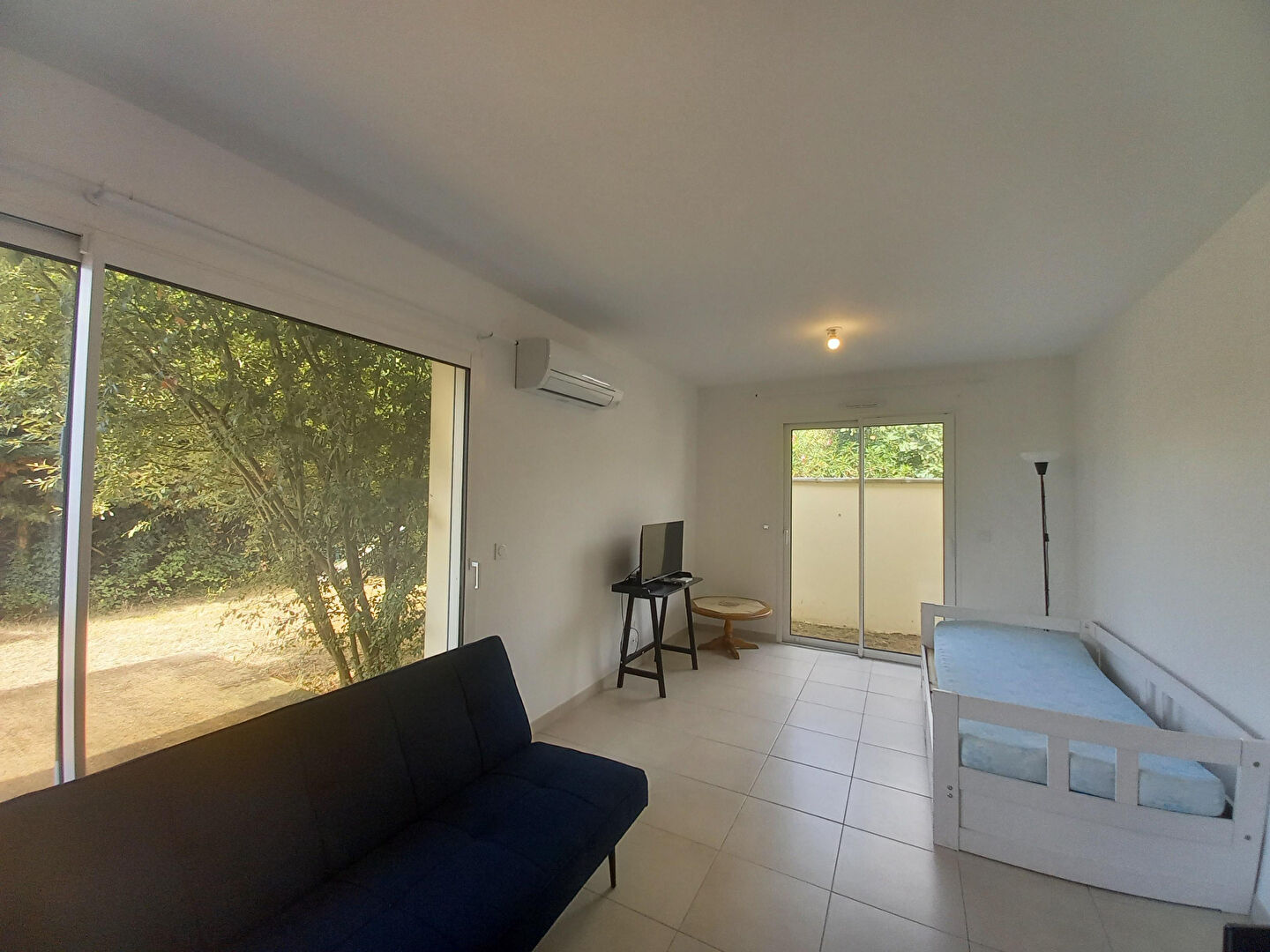 Maison récente louée meublée, elle se compose d'une entrée, d'un salon/séjour, d'une cuisine aménagée et équipée (hotte, plaque, four, lave vaisselle, machine à laver), d'une chambre, d'une salle d'eau avec WC. La maison est équip...