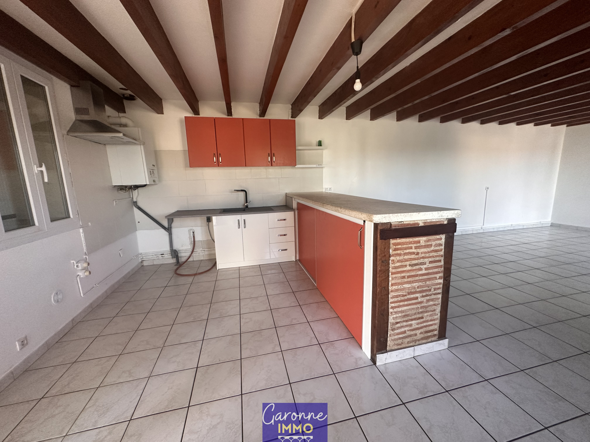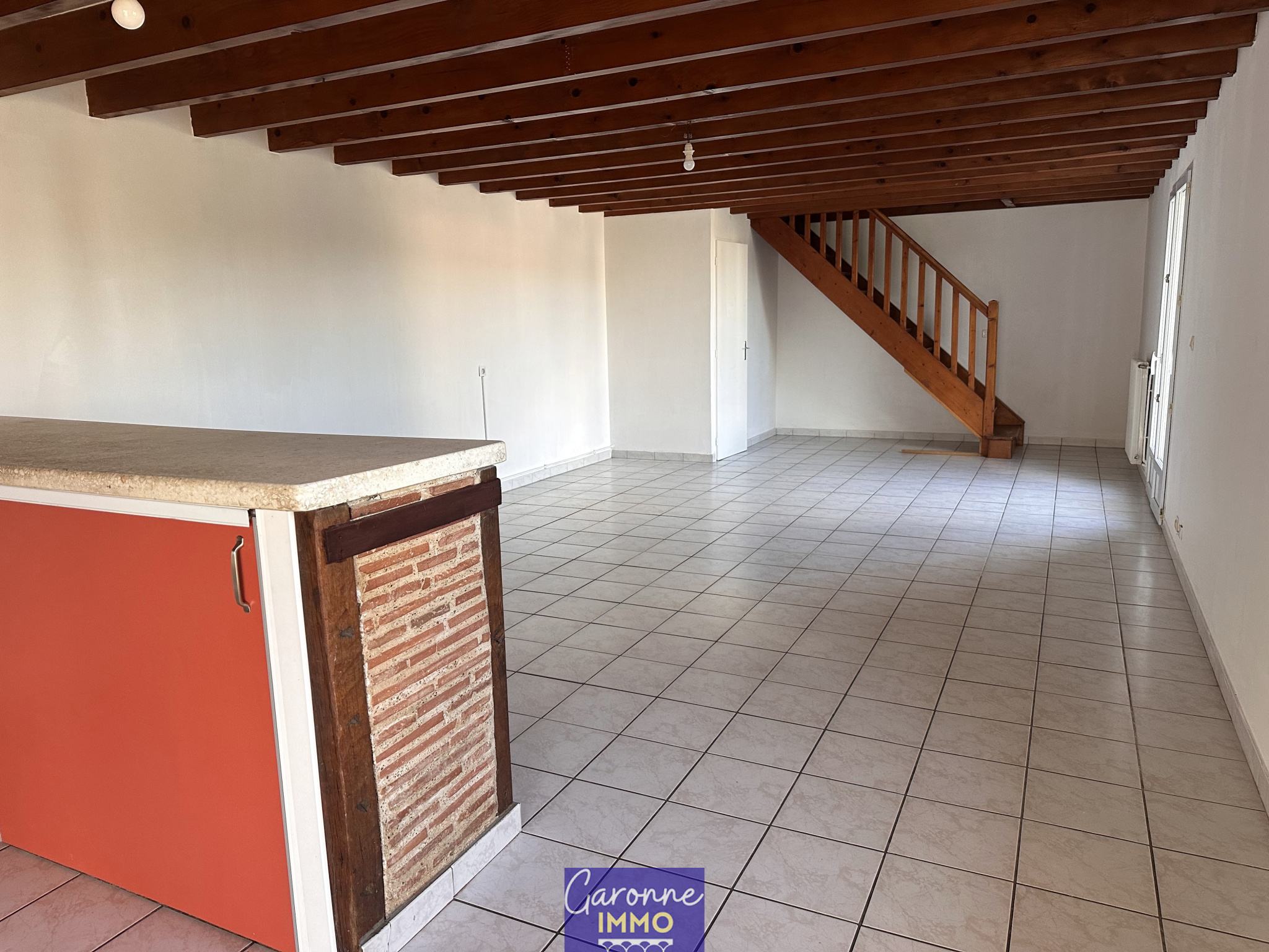 Maison T4 mitoyenne d'un côté de 95m2 comprenant une entrée, une cuisine équipée ouverte sur un salon/séjour, un WC.