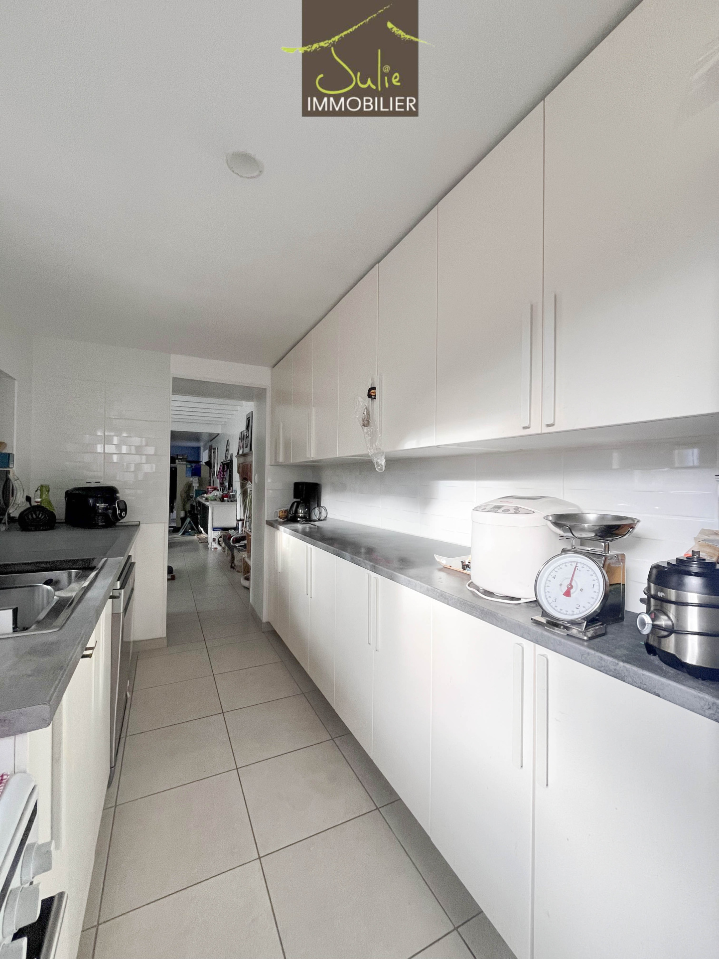 Elle vous offre : une entrée, séjour, cuisine équipée (plaque de cuisson, four, hotte), 2 chambres, salle de bains, toilettes, cellier, chaufferie.