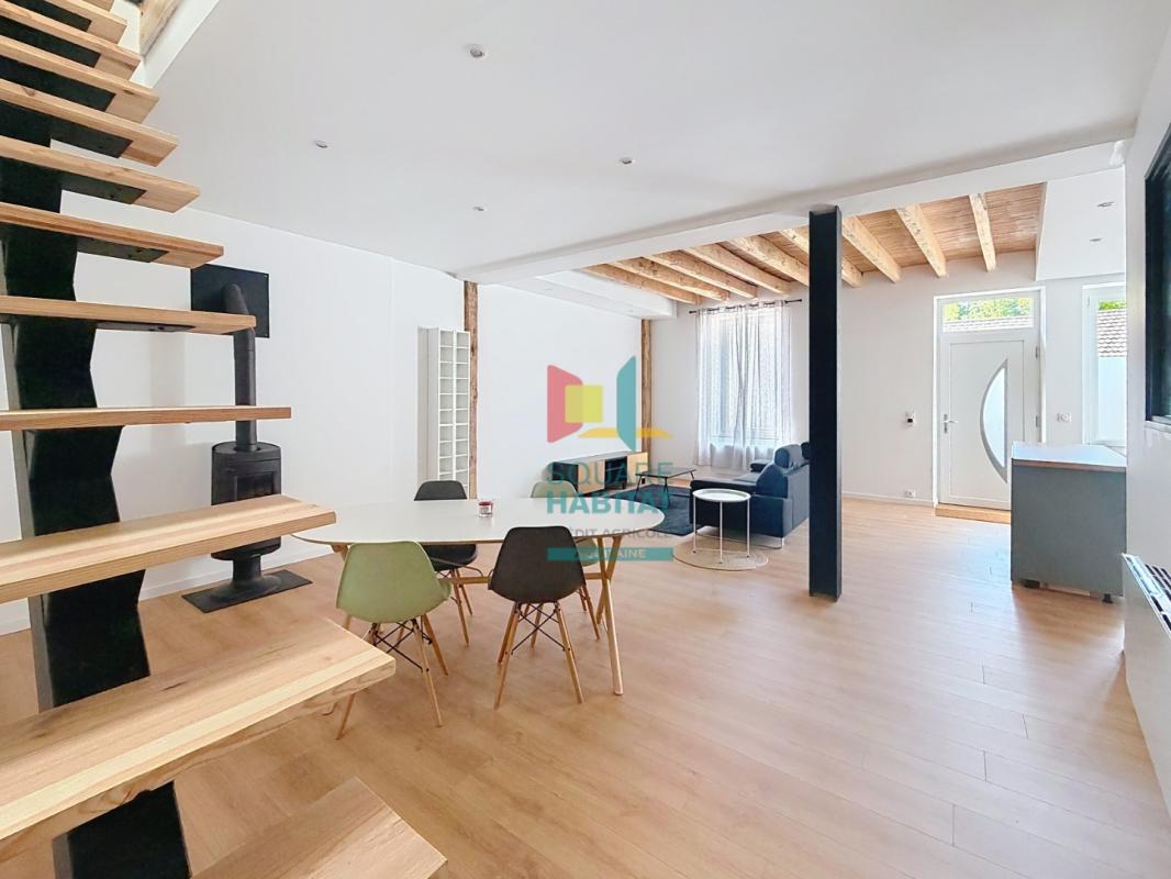 Maison meublée de 3 pièces, entièrement rénovée à neuf. D'une surface habitable de 99 m², elle se compose au rez-de-chaussée d'une cuisine ouverte, équipée et aménagée, donnant sur un séjour lumineux, ainsi que d'un cellier et de WC indépendants...