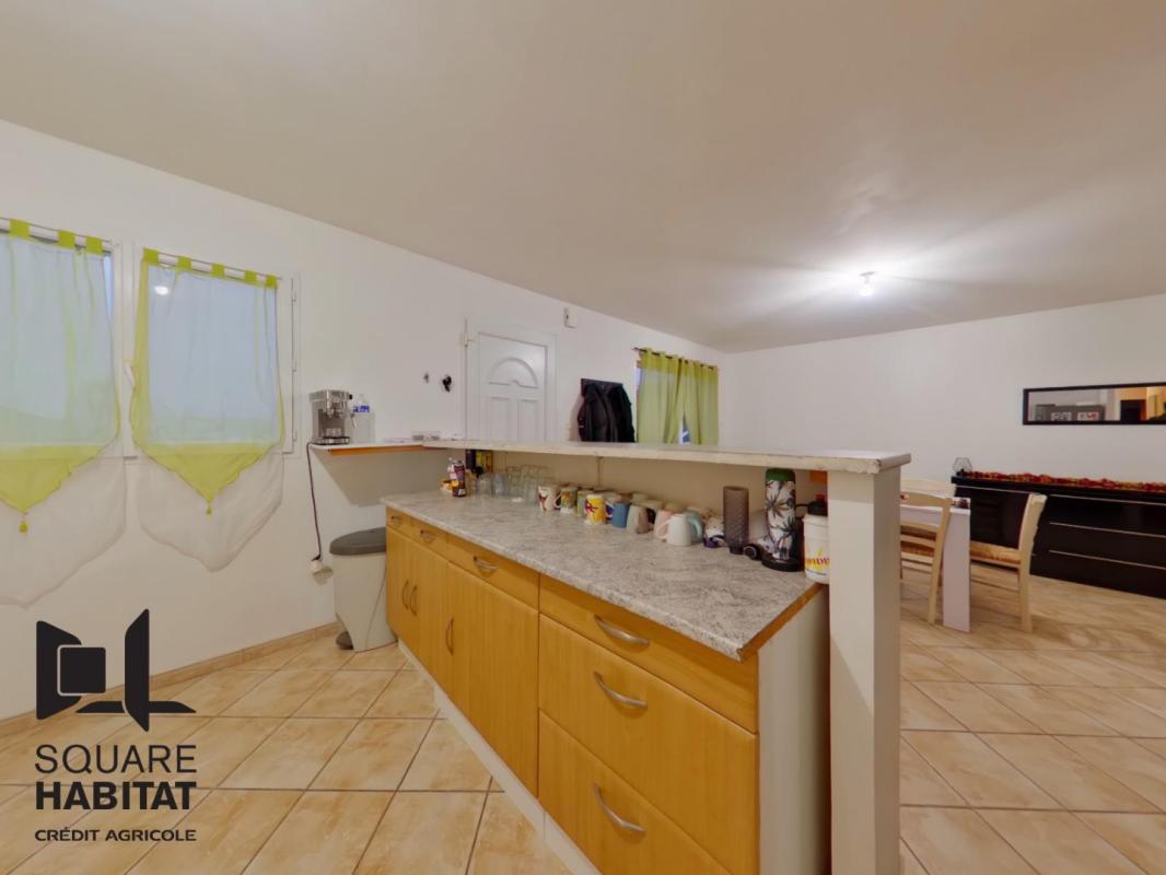 L'Agence SQUARE HABITAT vous propose cette maison de type 4 comprenant au rez-de-chaussée, une Entrée, une pièce de vie ouverte sur une cuisine aménagée et équipée (hotte, plaques), un toilettes, accès au garage et jardin.