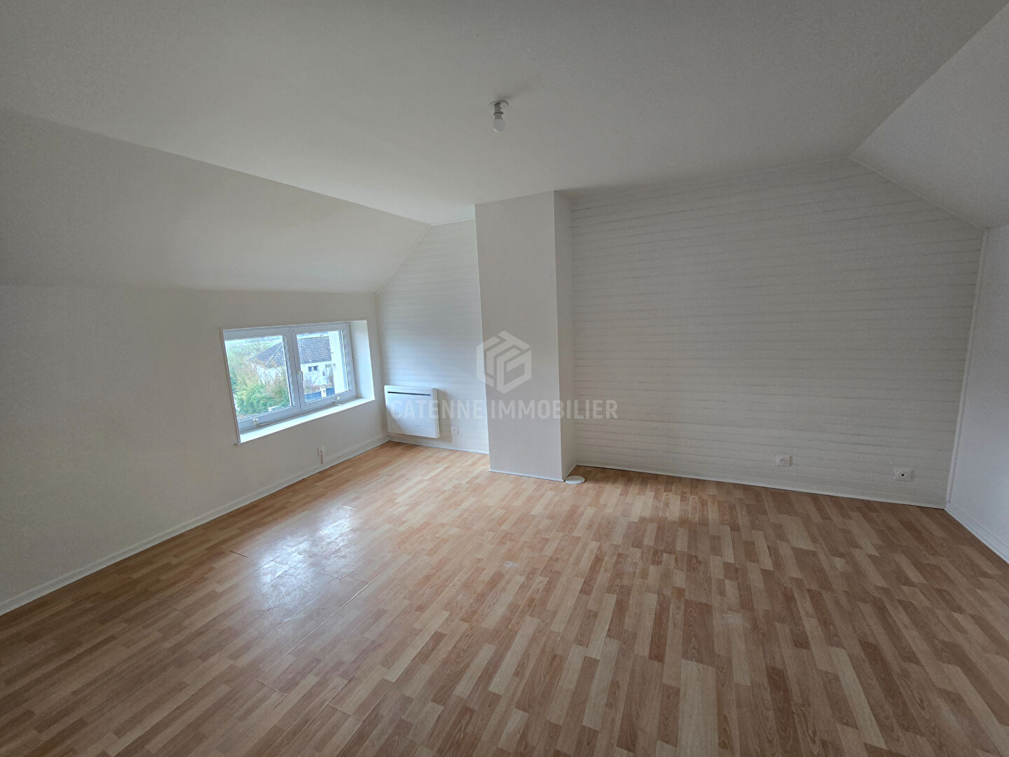 A louer à VAUMOISE (60117), une maison de type F2 comprenant séjour avec cuisine aménagée ouverte. A l'étage chambre, salle d'eau avec WC. Cave . Petit jardin clos.