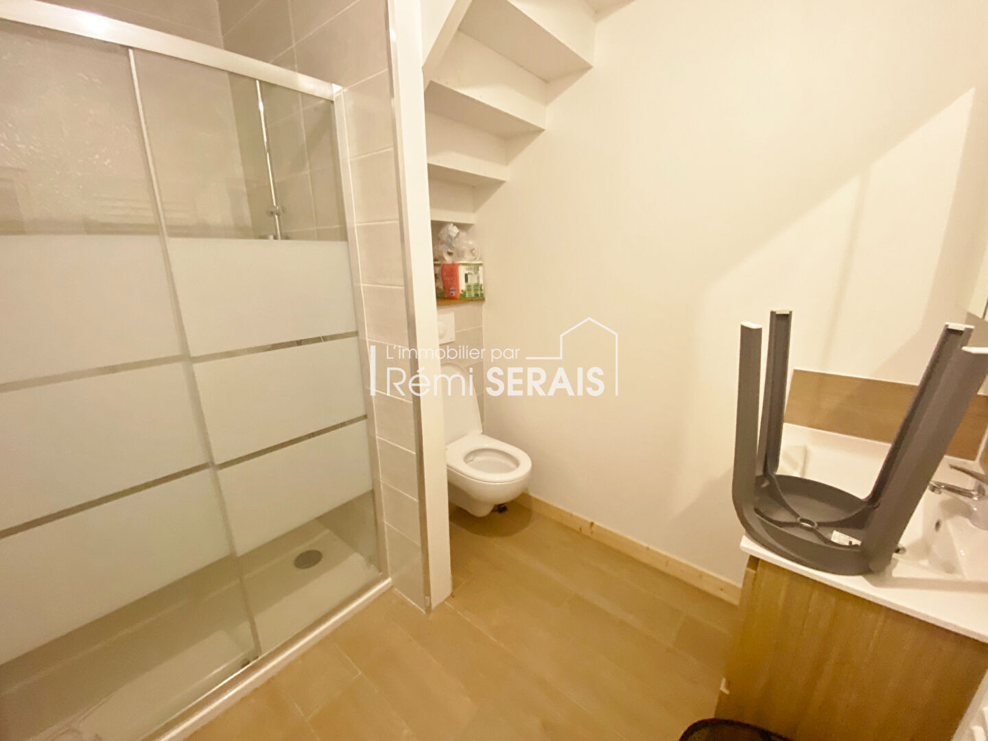une cuisine aménagée et équipée, un grand salon, une salle de bain avec wc.