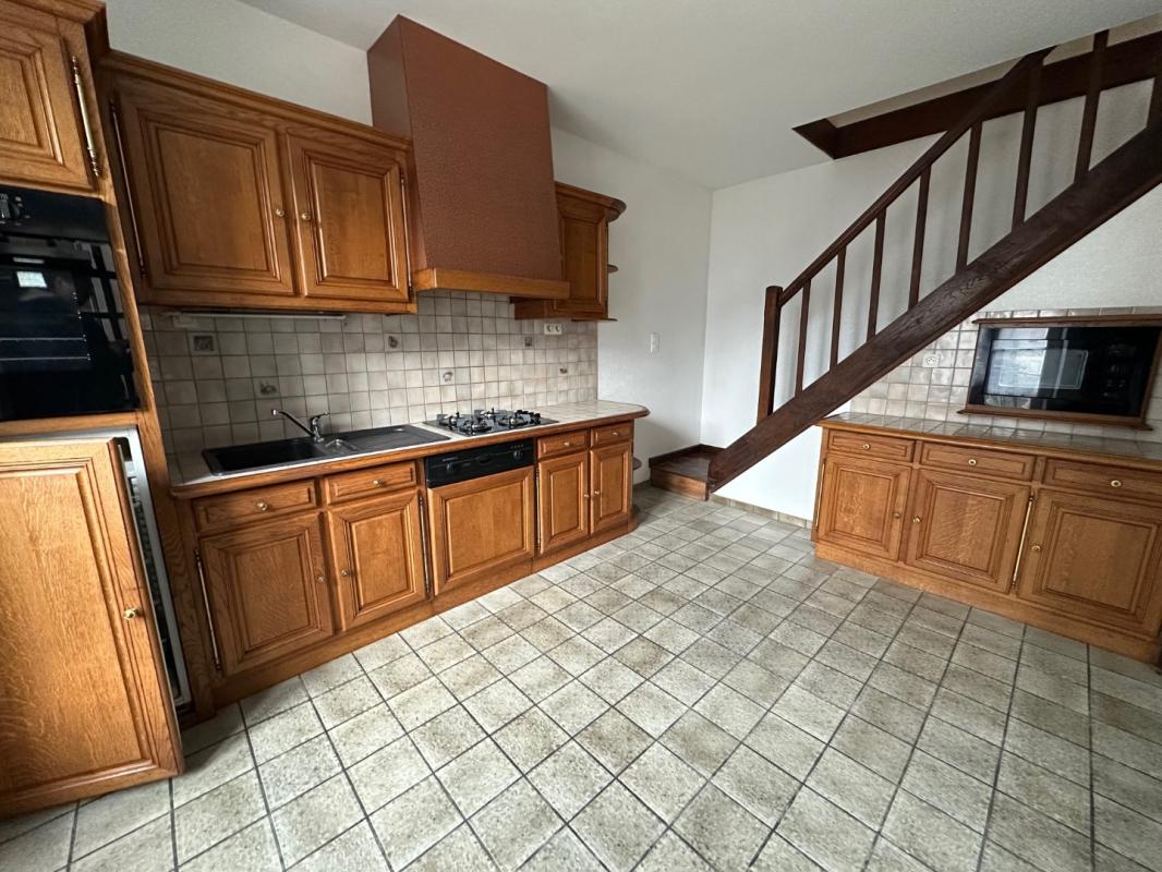 Proche écoles, commerces, centre ville - Maison de 110 m² comprenant un beau séjour avec cuisine aménagée et équipée, wc. A l'étage trois chambres, salle d'eau et wc. Chauffage gaz de ville. Une petite courette. PAS DE JARDIN. LIBRE MI JANVIER.