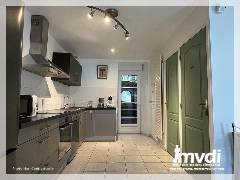 Venez découvrir cette charmante maison dans le centre-ville d'Oudon offrant une belle cuisine toute aménagée et équipée avec espace repas et salon indépendant avec rangements.