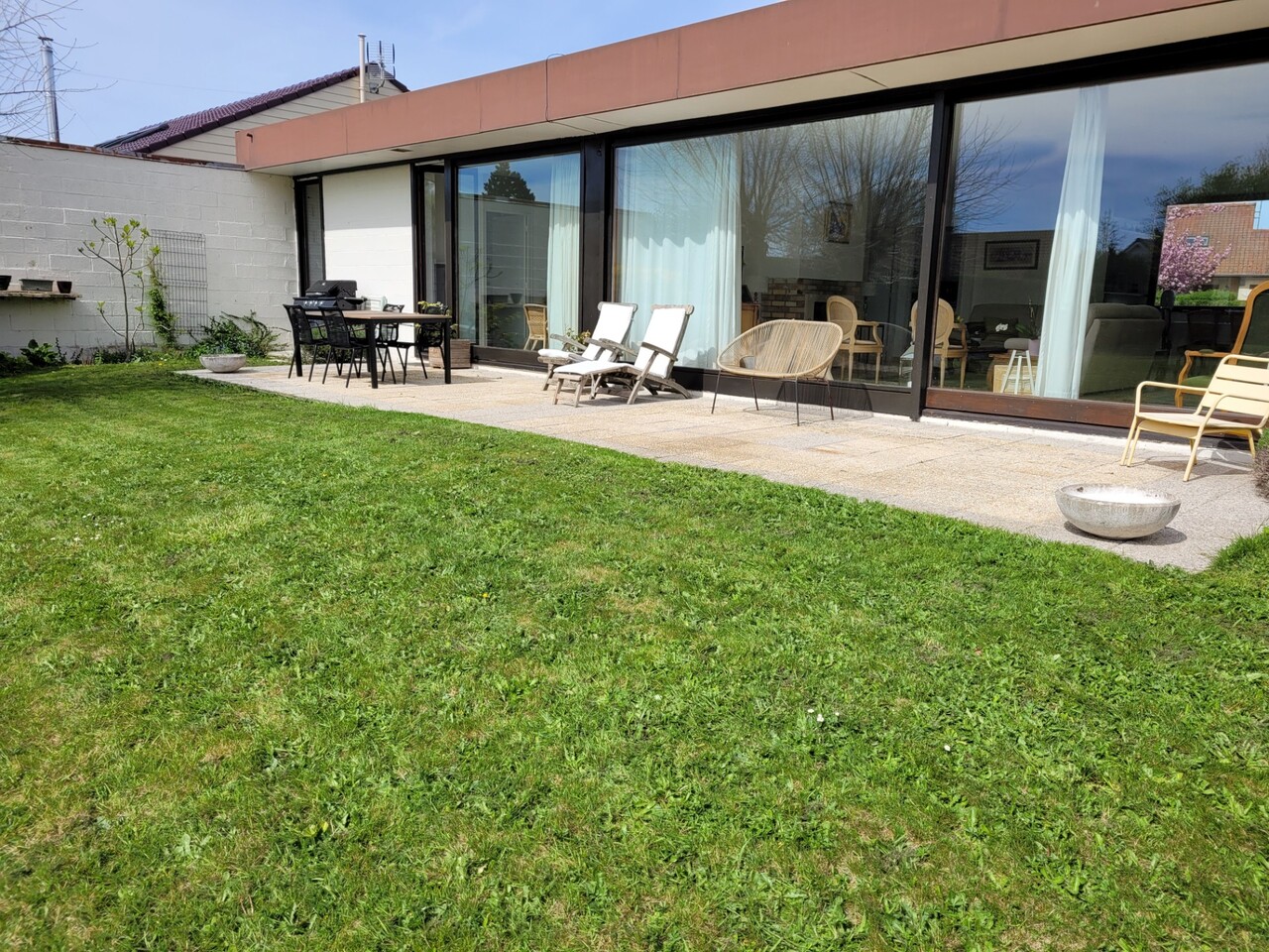 Joli plain-pied sur Oye-Plage offrant: Une entrée, un grand séjour très lumineux ouvert sur une cuisine aménagée équipée, cellier, un second séjour pouvant servir salle de jeux ou bureau, 4 chambres dont une avec salle d' eau, une salle de bain, 2WC.