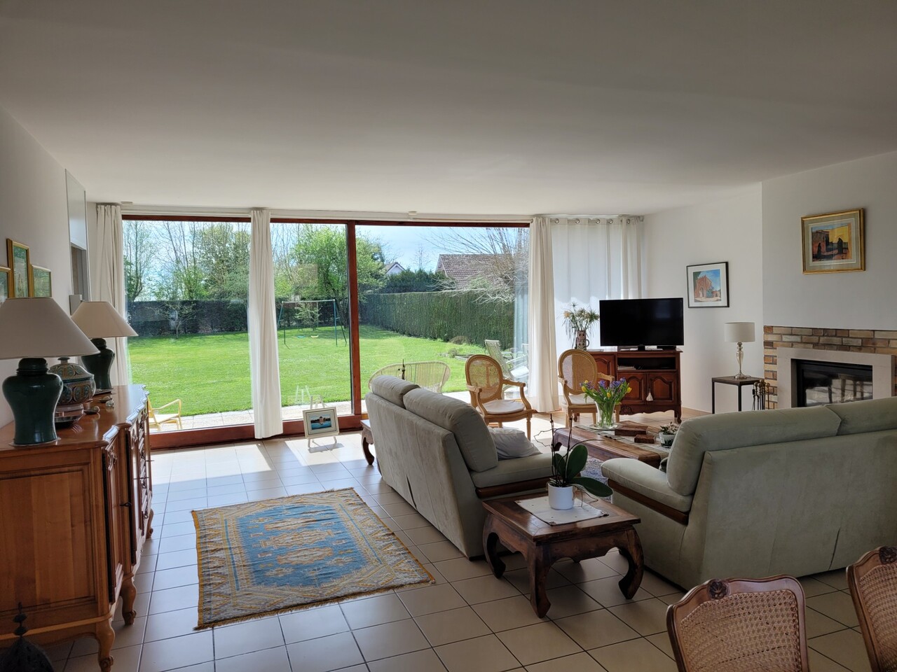 Plain pied en très bon état comprenant entrée, séjour double, cuisine aménagée, 4 chambres, une salle de bains, garage, beau jardin